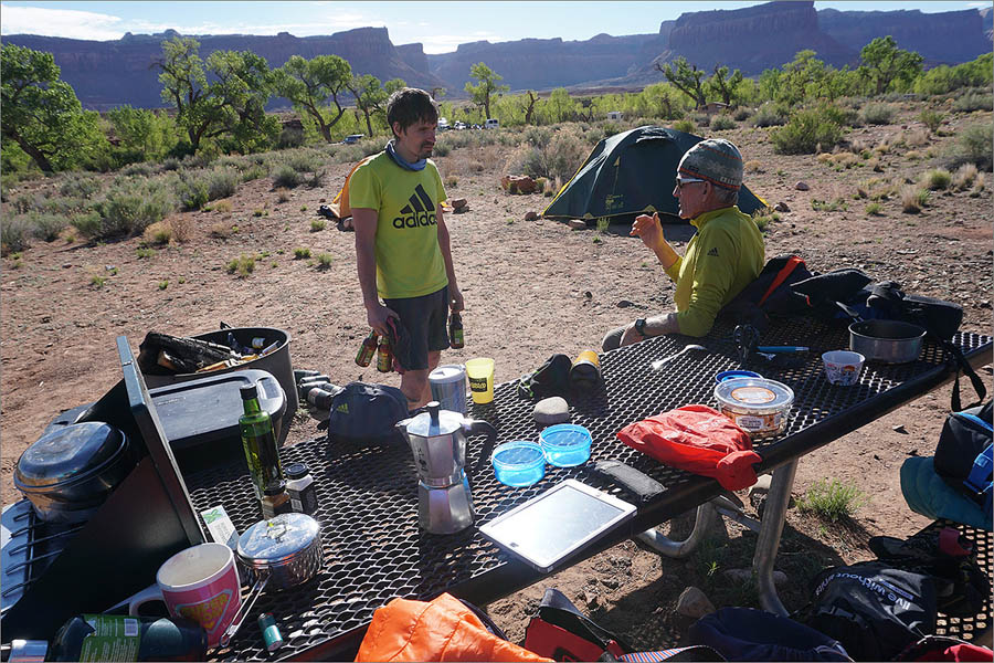 Утро пробило в 7, Паша торопит на скалы - днем жарко, надо скорее, а то скалы убегут. В общем не смотря на это, утренний кофе, каша) Все дела.