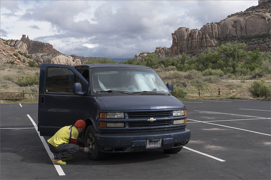Ночью я то рулил, то спал, а к утру каким то чудом мы добрались до Солт-Лэйк-Сити. Закупились, теперь шмотье уже на коленках и под ногами - крутить педали становится не удобно.