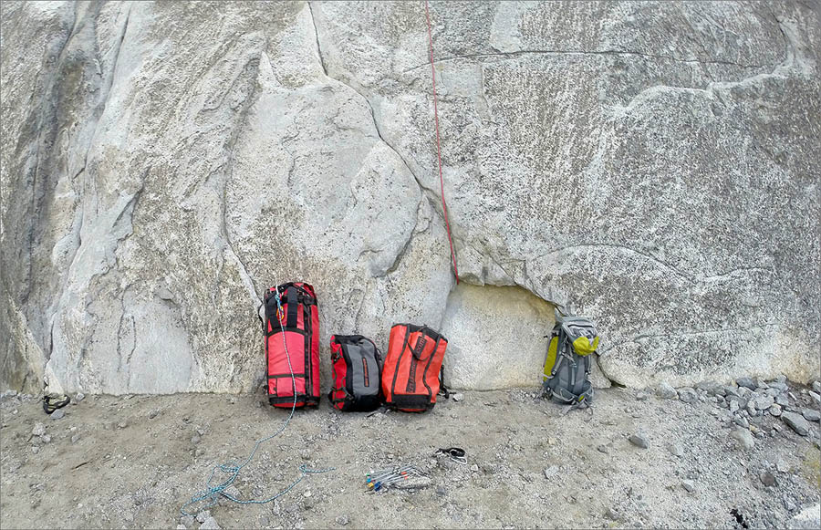 После дня отдыха пришли дожди и мы терпеливо ждали погоду. Прогноз обещал 3 дня погоды до нашего отъезда. Впритык - но успеть можно. Но тут мы не учли - что кроме нас таких умных была вся долина. В день отрыва - на маршруте уже висело больше 10 связок. Кто то начал с земли - кто то зажумарил по провешенным заранее веревкам. Короче - перед нами было много людей - что не добавляло оптимизма.