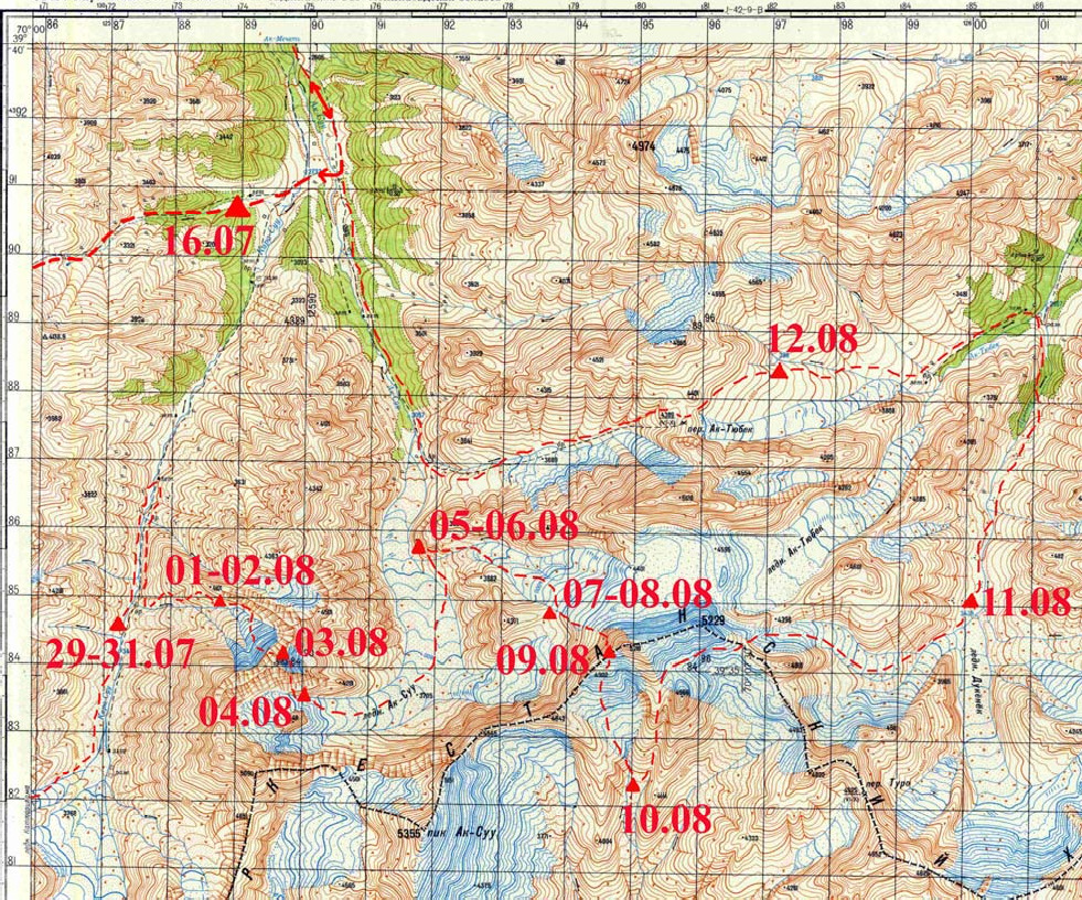 Фото 10.3. Трек пути по долине р. Дукенек (Орточашма). Пер. Ак-Тюбек