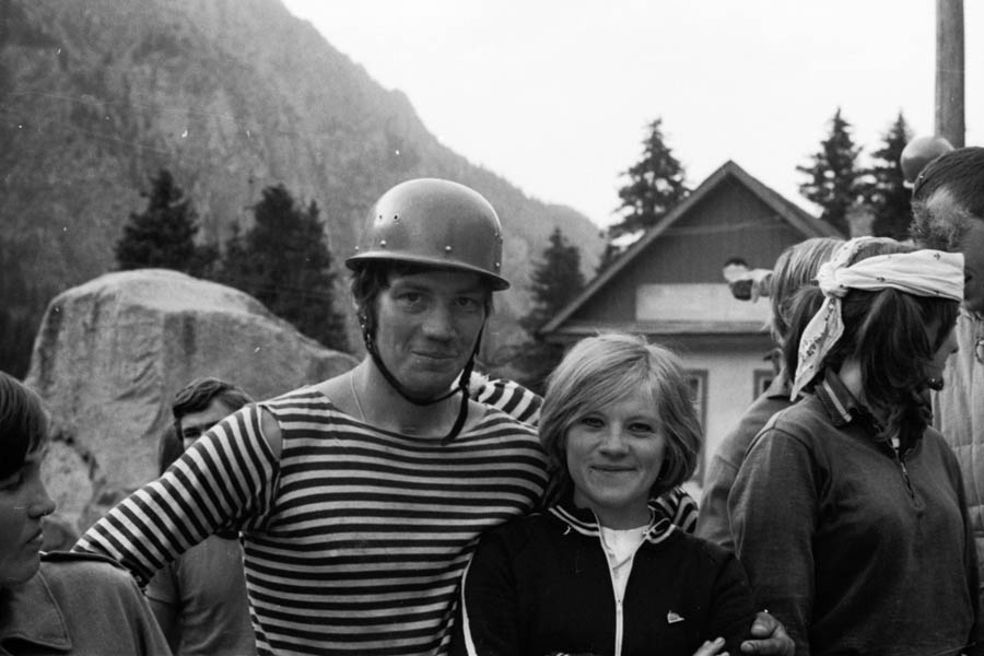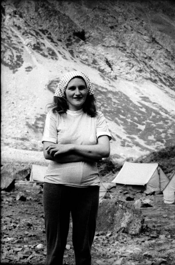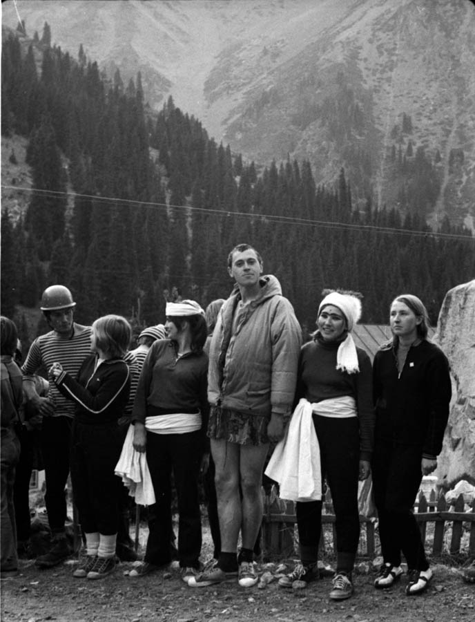 Добрый, отзывчивый, возможно, его звали Кокосов Юрий Геннадиевич (это я проанализировала пришедшие после окончания смены ко мне письма от новых друзей, которым я высылала фотографии о нашем пребывании в лагере. Мы с подругой записались на 4 машину, которая отвозила прибывших новичков и бывалых альпинистов до селения Талгар. До отъезда было немного свободного времени и мы погуляли по этому красивому городу. Я поснимала немного фонтаны, дворец Ленина, памятник великому казахскому писателю Абаю. По сравнению с нашим Новосибирском, городом-трудягой, который в войну много чего сделал для Победы, Алма-Ата была уже в то время красавицей. С железнодорожного вокзала отправили домой телеграммы. Сейчас, через 44 года после описанных событий, я знаю, как волнуются родители за своих детей, отправляющихся неизвестно куда. В девять с лишним часов машины повезли нас в лагерь. Обычно довозили до пионерского лагеря, в этом году нас провезли немного дальше. Высадились и отправились пешком по ущелью Среднего Талгара. Подъем был долгий и нудный, сначала я шла в нормальном темпе, затем километрах в трех от лагеря начала сдавать – сказались пропуски тренировок. Наконец, пришли в лагерь. Нас накормили. После небольшого отдыха пошли получать амуницию и постель. Нас с Татьяной поселили с новичками Таней, Верой из Свердловска и Алей оттуда же. Потом подселили Олю Салифутдинову из Чимкента – тоже “значок”. На следующий день, т.е. 13.06 1973 года на стадионе сдавали нормативы, потом получали снаряжение. 14.06 нас осматривал доктор - симпатичный такой доктор оказался. Здоровье мое не подвело: пульс - 96, после 20 приседаний -132. Давление тоже нормальное. Нас разбили по отделениям, я попала в 1 отделение, Таня почему-то в другое. Командиром отделения у нас был назначен Репин Евгений Петрович. Командир отряда 2 этапа – Кельберг Анатолий Витальевич, прекрасный человек, альпинист, музыкант, -который запомнился мне еще с прошлого года. Спортивный, очень мужественный, прекрасно эрудированный, тонко понимающий юмор.