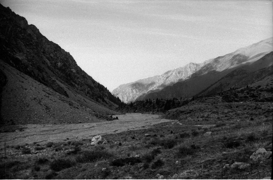 Отсюда мы ехали транспортом до поселка Талгар, а уж дальше под боевой выкладкой шли по ущелью Средний Талгар до альплагеря Талгар