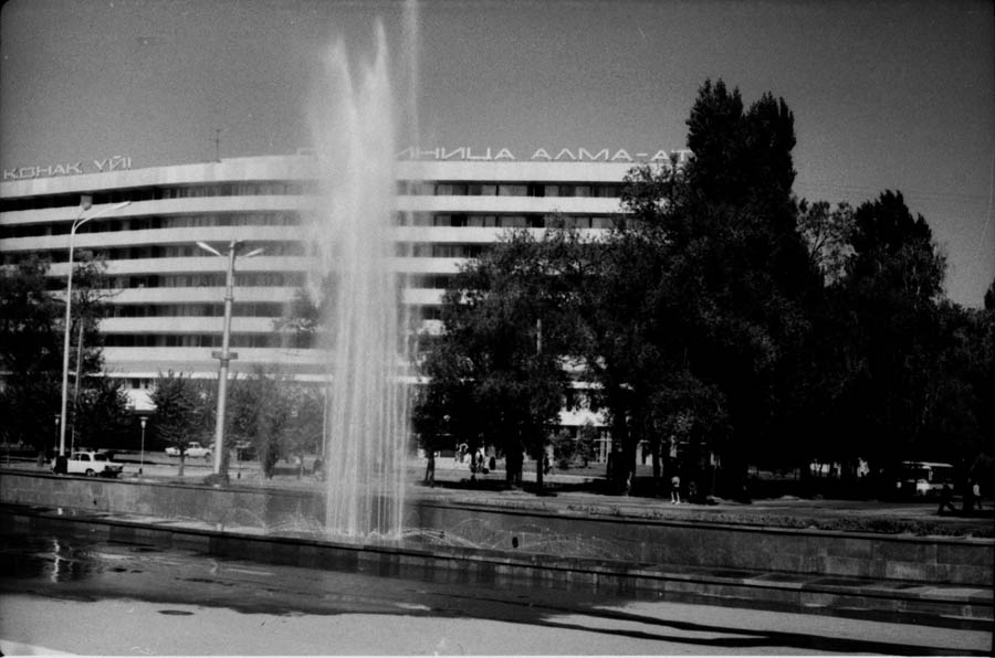 Прямо за дворцом стояла городская база альплагеря Талгар. Сюда съезжались со всей нашей необъятной страны увлеченные горами молодые люди. На базе в Алма-Ате нас застраховывали от несчастных случаев в горах возможно, ФИО страховщика был Колосов Юрий Петрович.