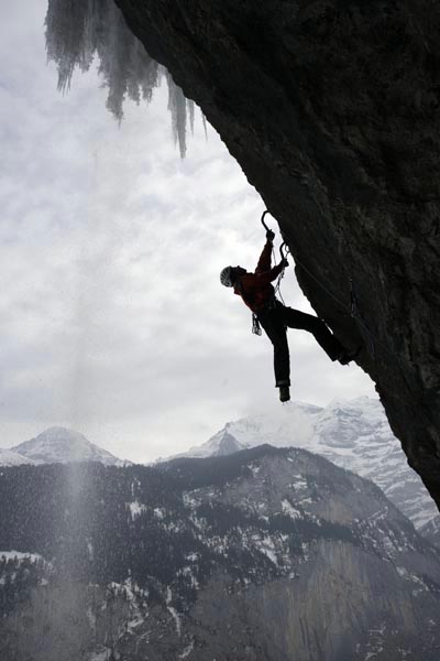First ascent of the Staubbachfall by Robert Jasper and Markus Stofer, Grading: M9 E5,