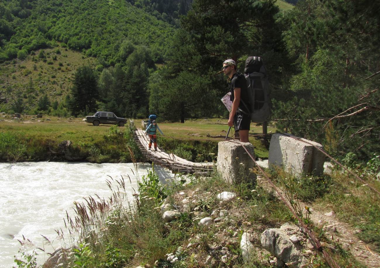 Организация заезда, связь, страховка.Заезд осуществлялся через г. Минеральный Воды, куда группа прибыла рейсом авиакомпании «S7». Далее на микроавтобусе добирались до начала маршрута в д.р. Учкулан мост через р. Учкулан близь реки Кичкинакол. Переночевали на ближайших к мосту ночевках. Утром начали движение по маршруту. На Кавказе группа пользовалась услугами туристической компании «Тау Сервис». Была организована встреча в аэропорту Минеральные воды, переезд до д.р. Учкулан, постановка забросок в турбазе Глобус (стоимость 300р за 5 дней) и в а/л Узункол (сейчас ВСОЦ "Узункол", стоимость 100р/день), забор газа из магазина в г. Пятигорск. Пропуска в пограничную зону оформлялись путем отправления списка группы и заявления на оформление группового пропуска на почту: pu.kcherkes@fsb.ru и pu.kbr@fsb.ru в заявлении надо указать обратный адрес для отправки пропусков заказным письмом. Постановка на учет в МЧС осуществлялась по почте: pso272@mail.ru Страхование группы осуществлялось в компании Согласие. (www.soglasie.ru) Контакты Тау сервис: Саракуев Борис bezonec@list.ru Тел. 8-928-950-38-68, 8-929-884-31-75 График движения на маршруте.Поход проходил в рамках школы базового уровня при турклубе ФСТ-ОТМ. Между группами было запланировано регулярное взаимодействие посредством ежедневных сеансов радиосвязи (9:45 – 10:15, 14:45-15:15, 19:45 -20:15). Для связи с Москвой, а также на экстренные случаи, группа была оснащена спутниковым телефоном Турайя (аренда телефона http://rentsat.ru/). По факту, не всегда удавалось выйти на связь с другими группами из-за нахождения в различных долинах. График движения на маршруте по дням: