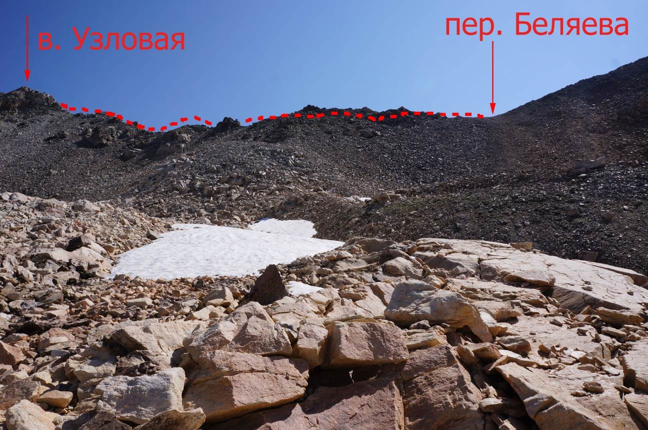 Перевал Беляева (1Б, 3495 м), Вершина Узловая (1А, 3650 м)Перевал Беляева (1Б, 3495 м)