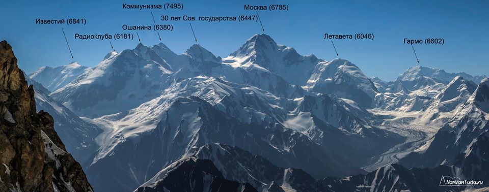 Подписал названия вершин на нескольких своих панорамах гор Центрального Тянь-Шаня и Памира.
