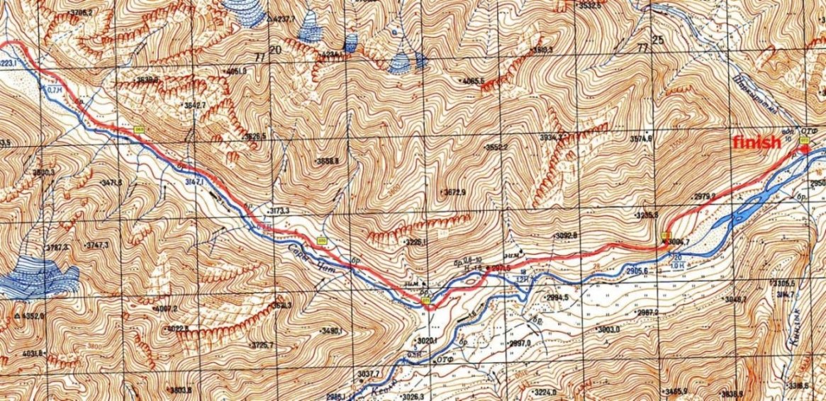 Рис. 27: Путь выхода под стену Джигита, к перевалу Онтор.