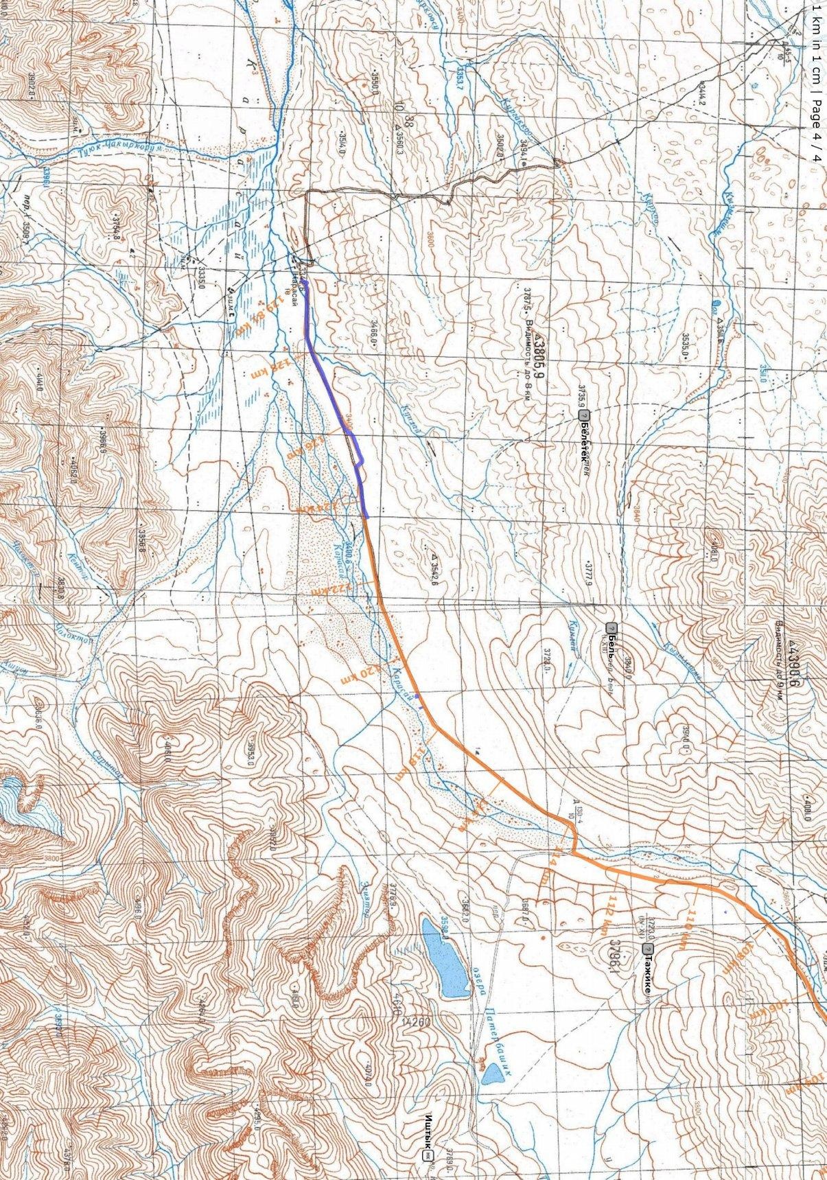 Рисунок 74. Дорога до села Кара-Сай. Заключение Основные результаты и выводыВ сумме за поход прошли около 73,0 ч ЧХВ, не считая выхода за заброской. Прошли около 155 км в плане, считая с коэф. 1,2 суммарный набор 5,1 км, суммарный сброс 4,1 км, 8 препятствий 2А, включая 6 отдельных перевалов, 1 связку перевалов и 1 траверс вершины. Совершено одно второвосхождение. Перевал Запасной пройден впервые с 1978 года (за 39 лет). Перевал Лагерный пройден через седловину, через которую не ходили с 1983 года (34 года). Перевал Кара-Сай Северный – сложный 2А (участок льда 60°). Если не считать первый день, когда встали практически на месте старта, за остальные 12 дней мы в среднем работали 6,1 ч ЧХВ в день, не считая выхода за заброской. Вывод: Успешно пройден горный поход 3 к. с.. Дополнительные выводыРайон Ак-Шийрака имеет особенности: