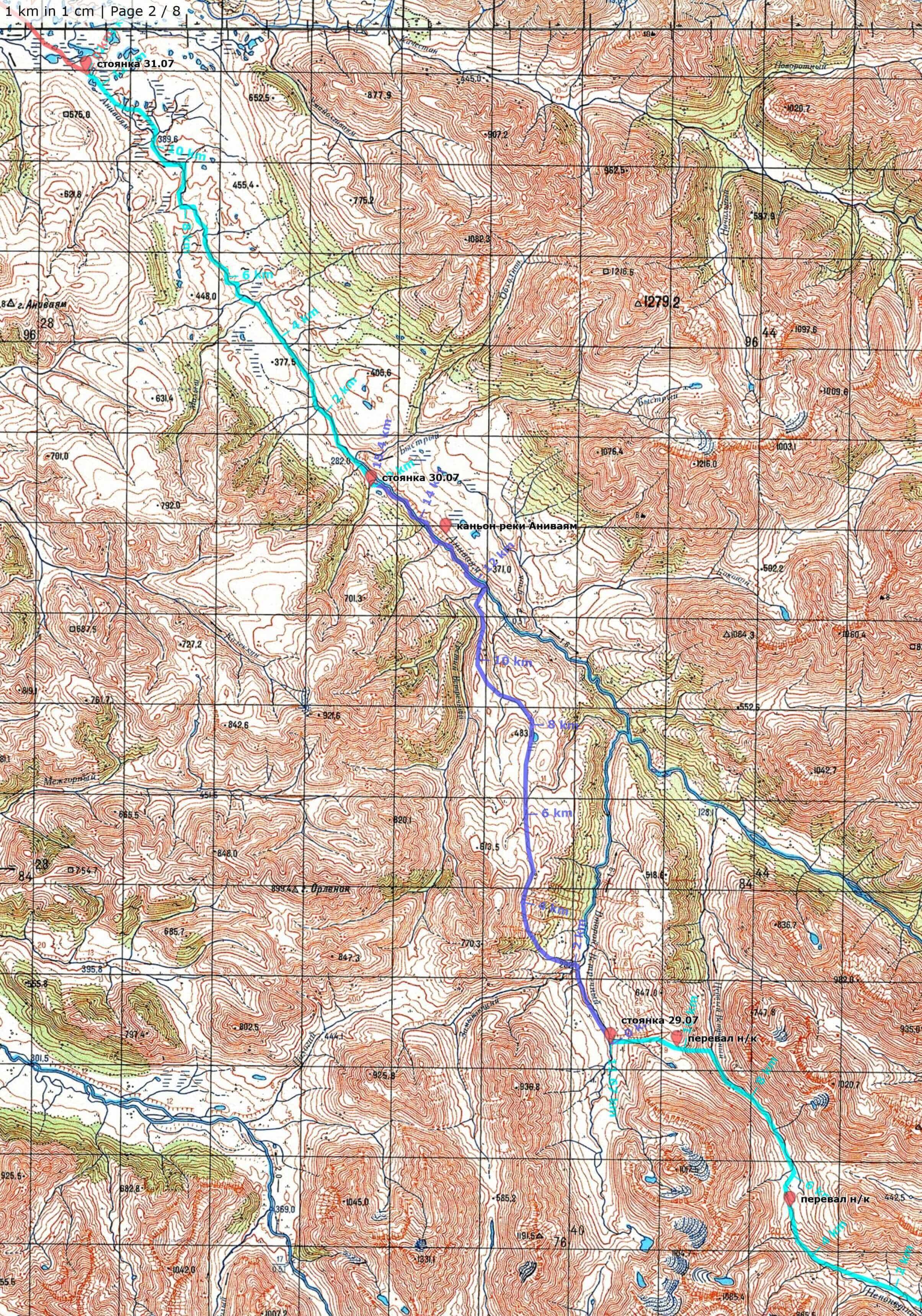 ПОДРОБНАЯ НИТКА МАРШРУТА г.Москва – г.Петропавловск-Камчатский – пос.Тиличики – пос.Ачайваям – бухта Северная Глубокая – р.Малый Аниваям – пр.приток р.Малый Аниваям – перевал Мост 700, 1А – р.Кайгытгынваям – перевал н/к – р.Малый Амаян – перевал Кастор 425, н/к – р.Иматраваям – бухта Иматра – бухта Северная Глубокая – р.Малый Аниваям – р.Непонятный – перевал н/к – руч.Первый Встречный – перевал н/к – руч.Второй Встречный – перевал н/к – руч. Третий Встречный– р.Аниваям – р.Ачайваям – пер.Московская Олимпиада 1555, 2Б (радиально со стороны н/к) – пер.Каменистый 1150, н/к – р.Лев.Яёлваям – руч.Ледяной – радиально восхождение вершина Ледяная 2562м, 1Б– р.Лев.Яёлваям – р. Этелвеем – перевал Пологий 1050, н/к – р.Ветвистая (каньон 1А) – р.Укэлаят Правая – р.Укэлаят – лев.пр.Укэлаят – перевал Каньонный 850, н/к – р.Восточная (каньон 1А) – лев.пр.р.Восточная – пер.Геленваям Южный 1150, н/к – р.Каньон (р.Геленваям) – пер.Геленваям Северный 1170, 1А – р.Коготь (первопрохождение каньона 1Б) – лев.пр.р.Коготь (каньон 1Б) – р.Пикасьваям (каньон 1Б) – лев.пр.р.Пикасьваям – перевал 650, н/к (первопрохождение водораздела) – р.Хатырка исток – р.Хатырка (сплав, порог 2к.т.) – пос.Хатырка – г.Анадырь – г.Москва. ОПРЕДЕЛЯЮЩИЕ ПРЕПЯТСТВИЯ МАРШРУТА