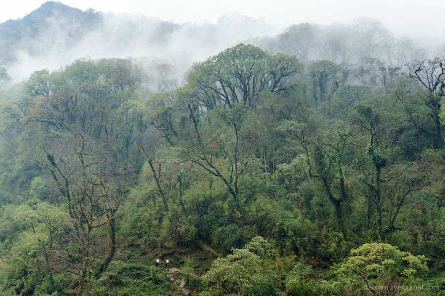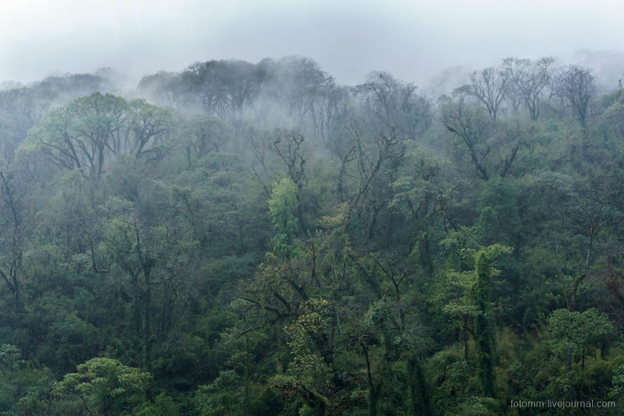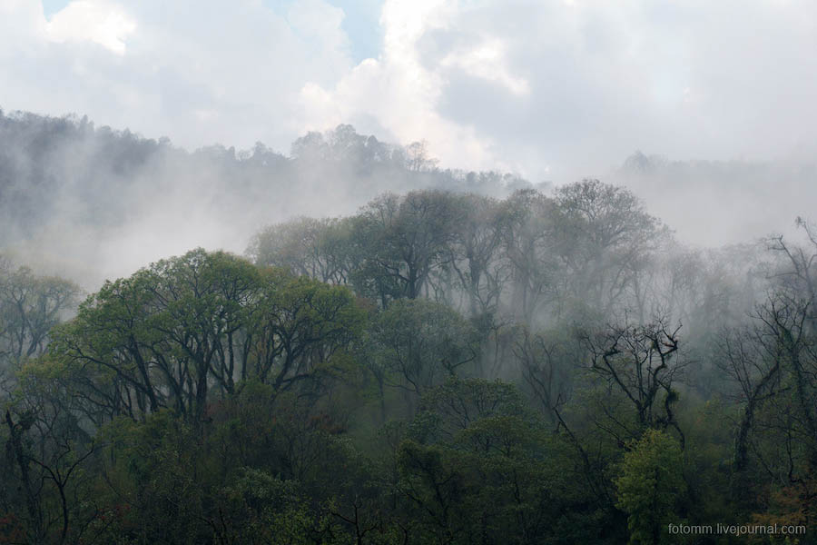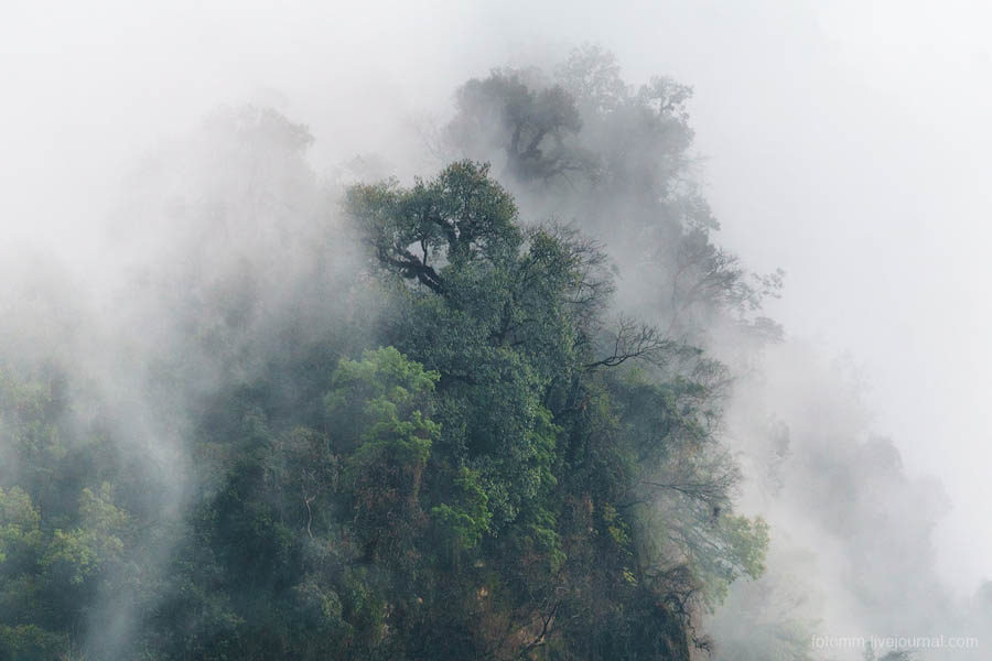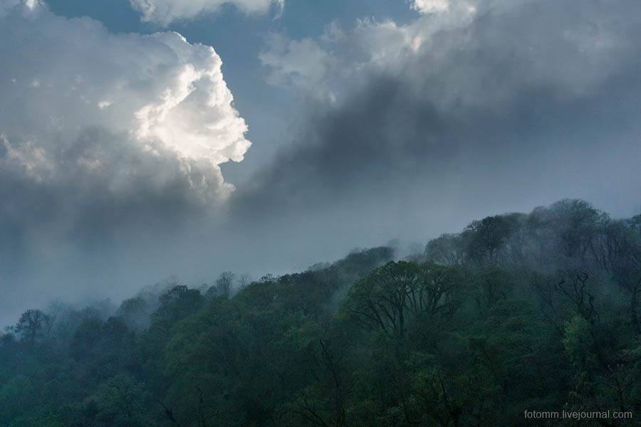 Особенно эффектно было световое шоу с участием облаков и стремительно клубящегося тумана, застревающего в ветвистых кронах огромных деревьев.