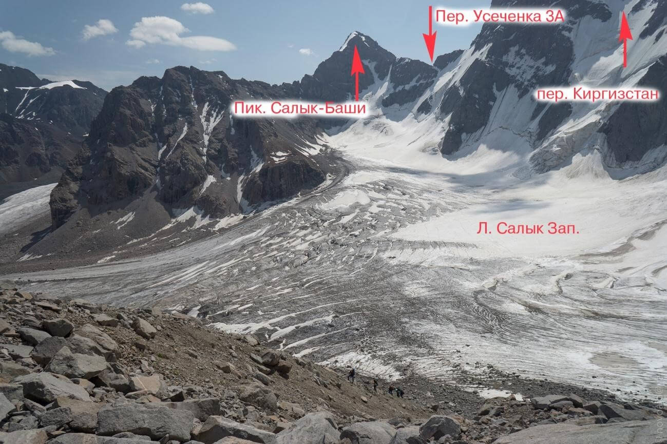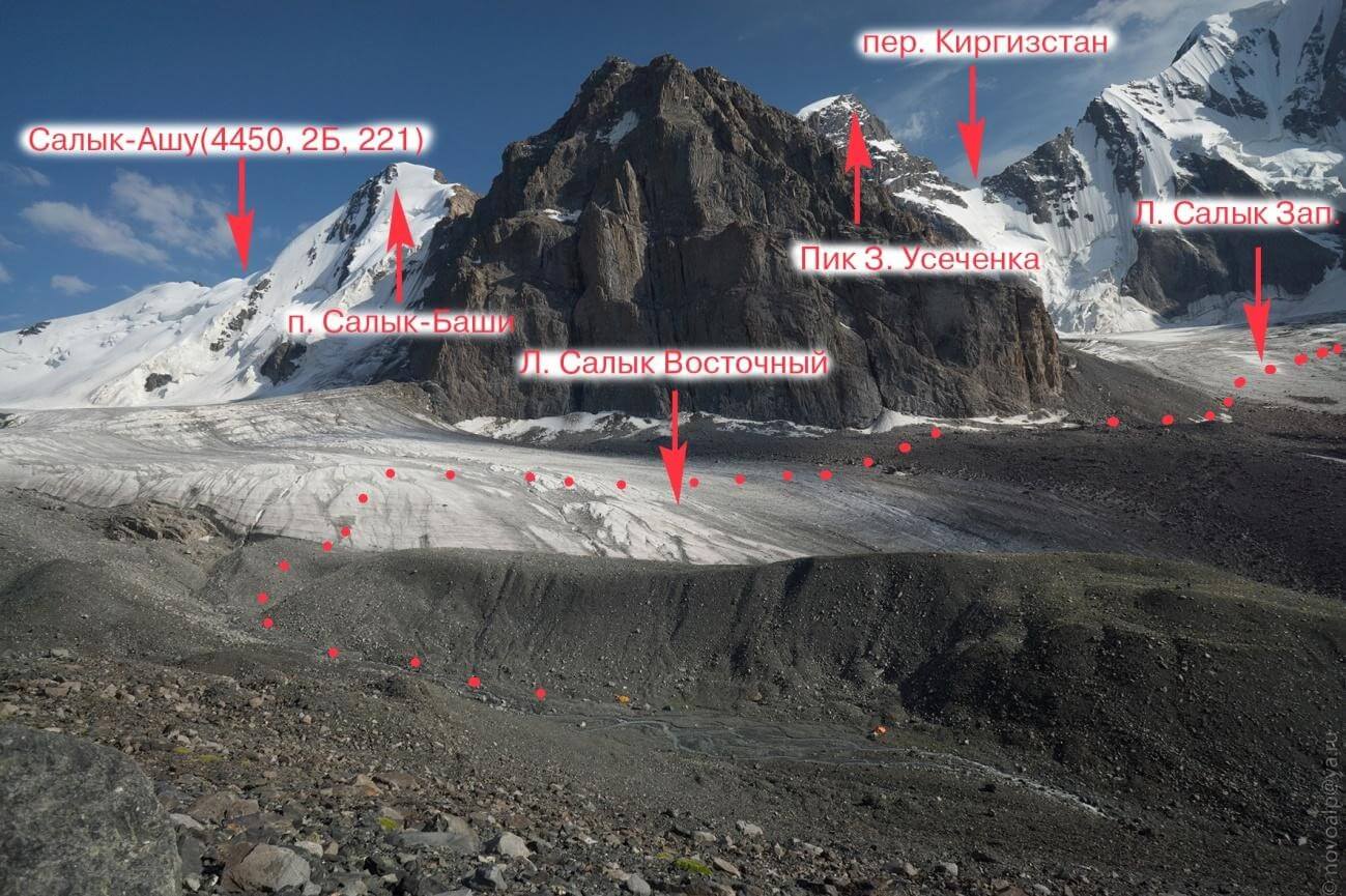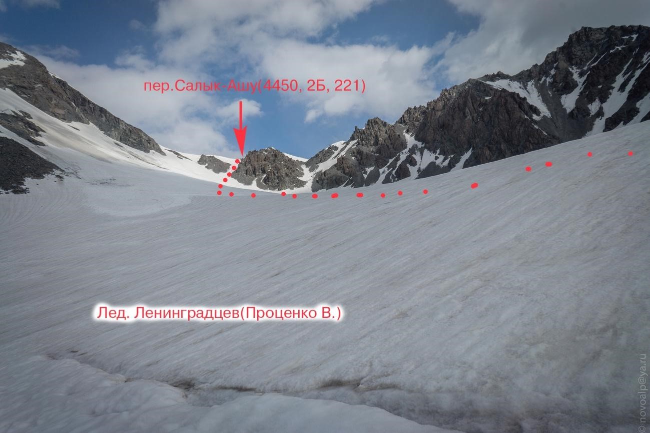 Рис 2.09. Путь подъема на перевал Салык-Ашу(4450, 2Б, 221)