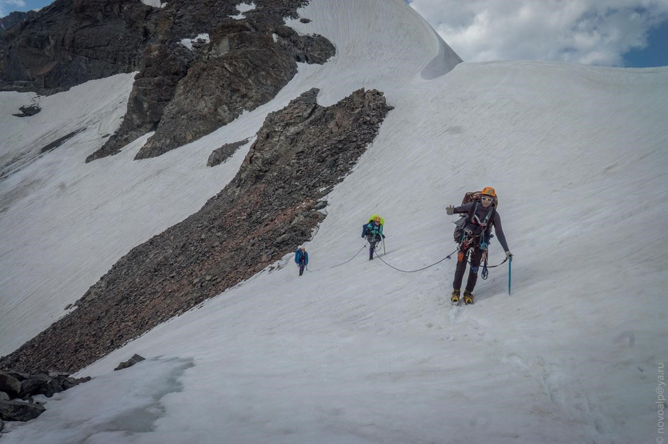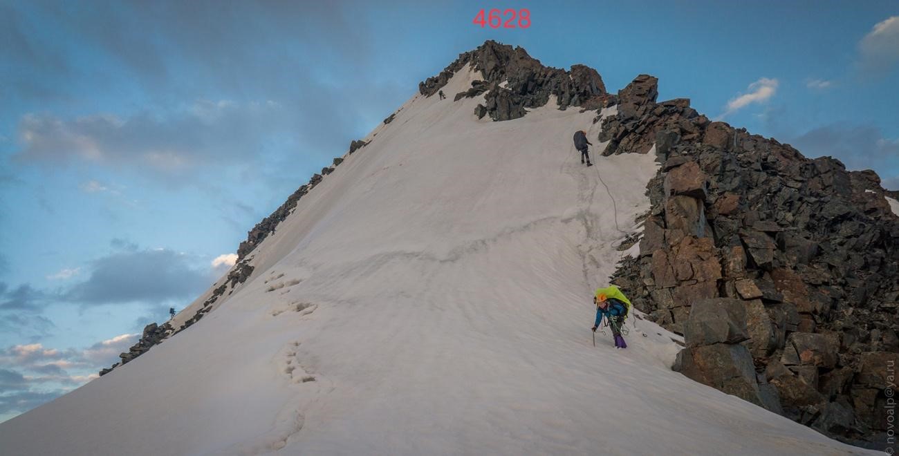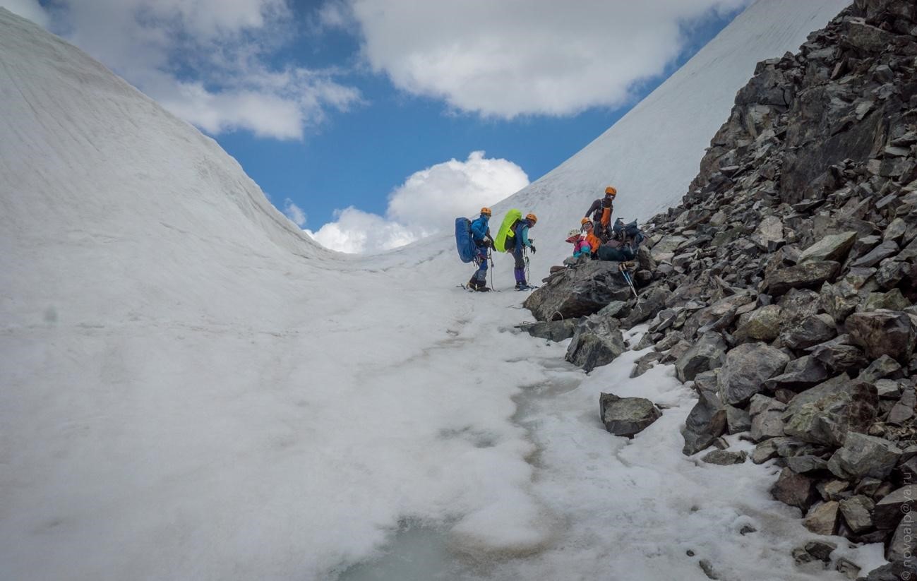 Рис 4.17. Группа на седловине пер. Хрустальный (4490, 3Б, 152).
