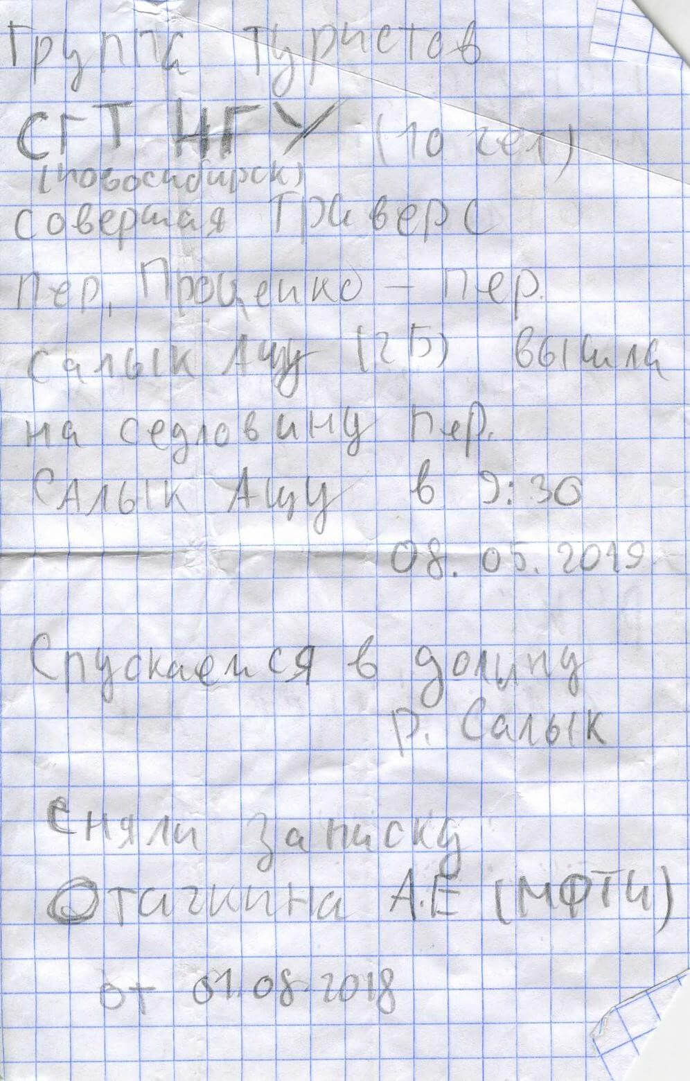 Рис 5.07 Перевальная записка, была без банки в мокром пакете, почти не читается. Может кто опознает.