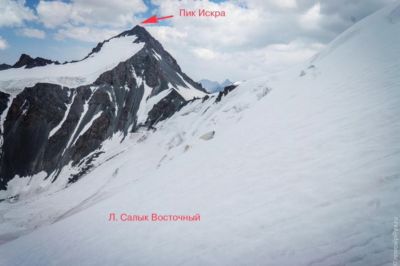 Рис 2.14. Вид на Пик Искра со спуска на лед.С.Рериха (Салык В.).