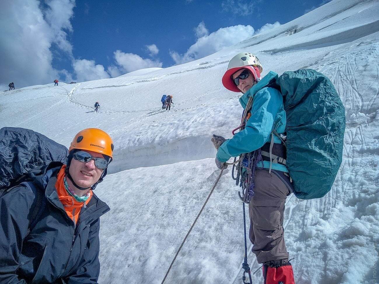 Рис 2.08. Преодоление трещины в связках на леднике Ленинградцев.