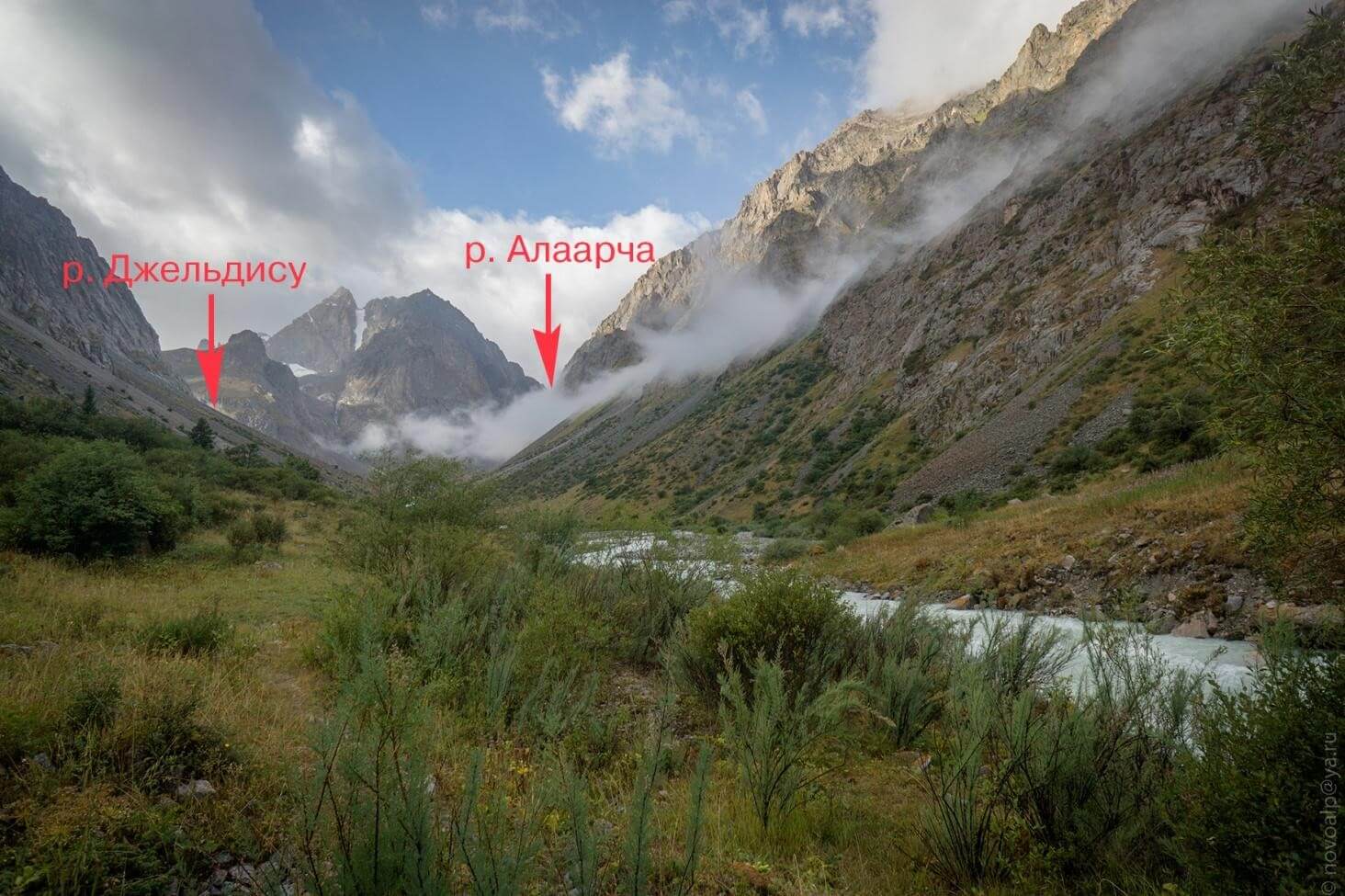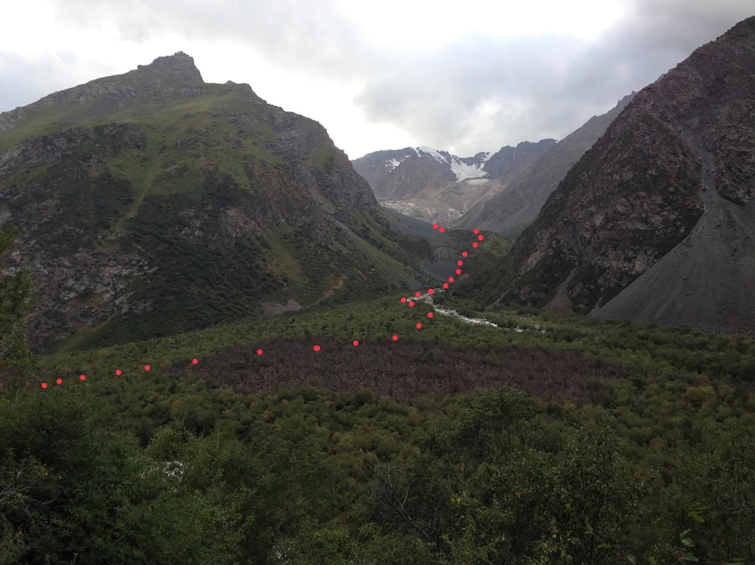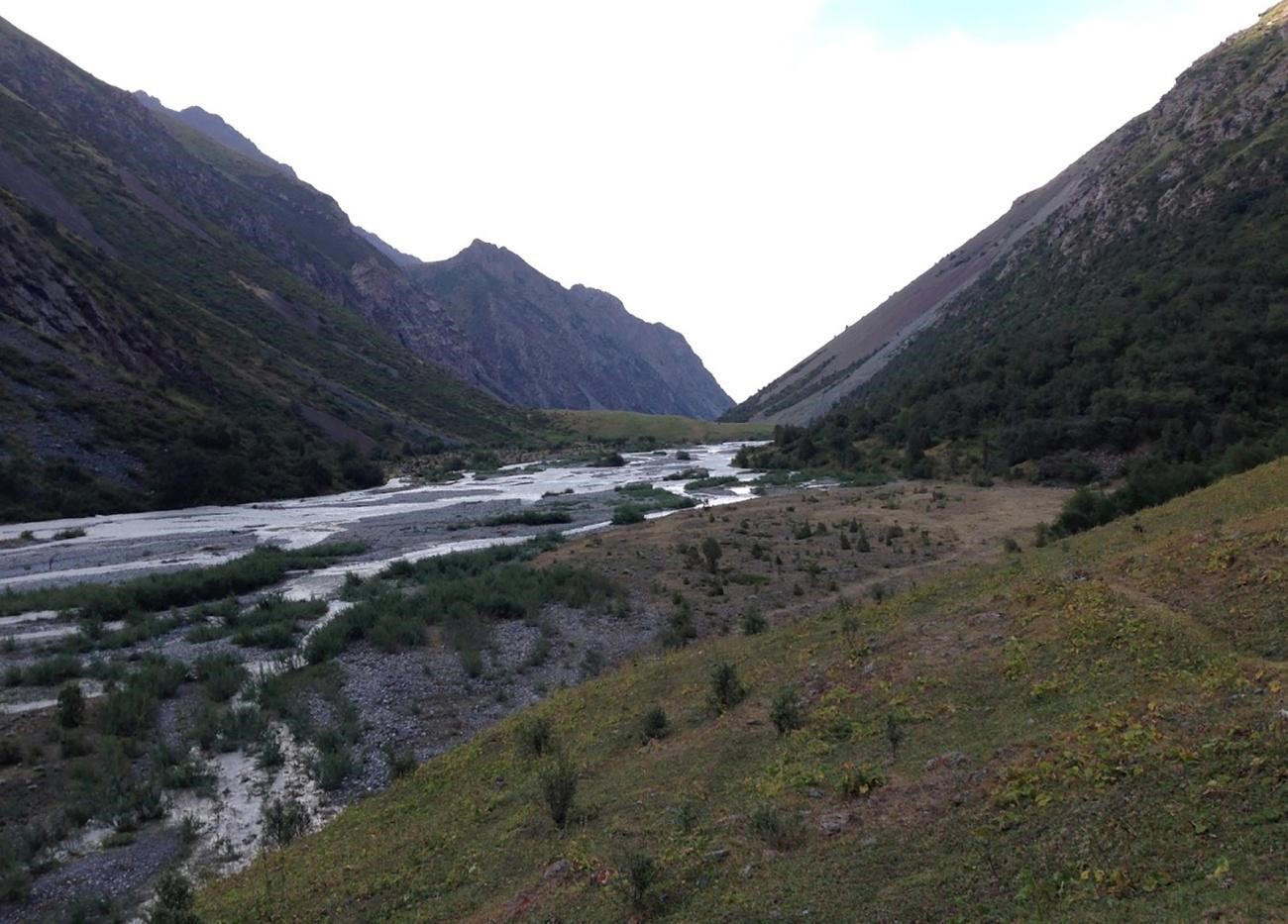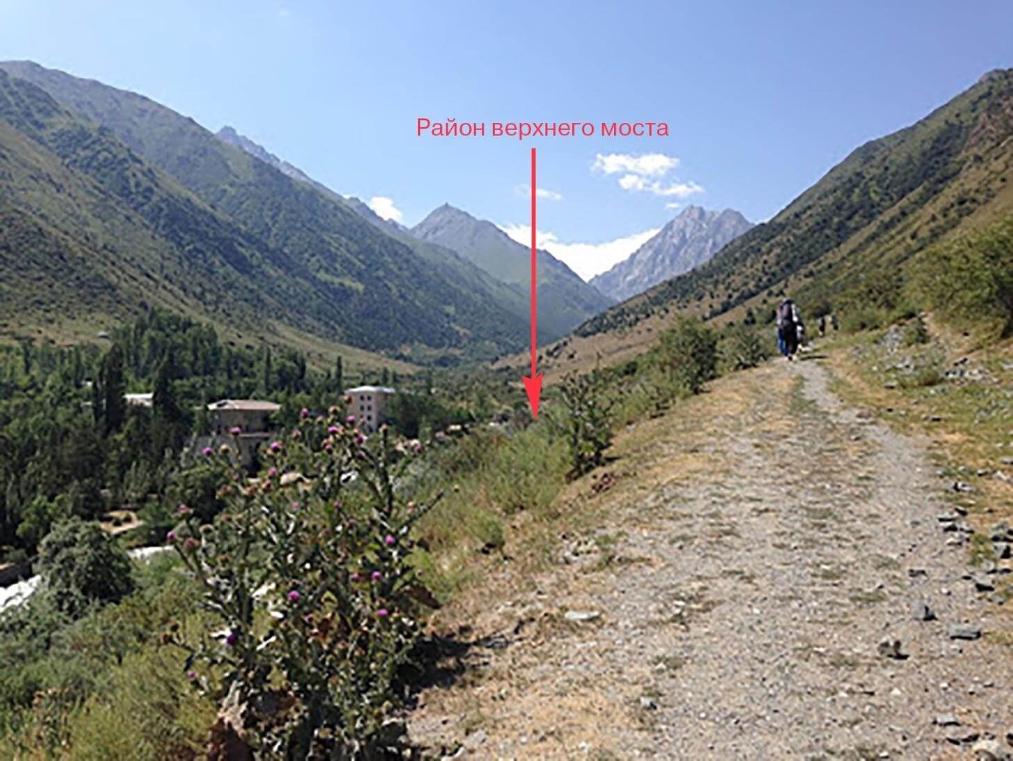 Рис 1.04. Тропы полевому берегу реки р. Иссык-Ата. Вид на развилку рек Быты и Иссык-Ата