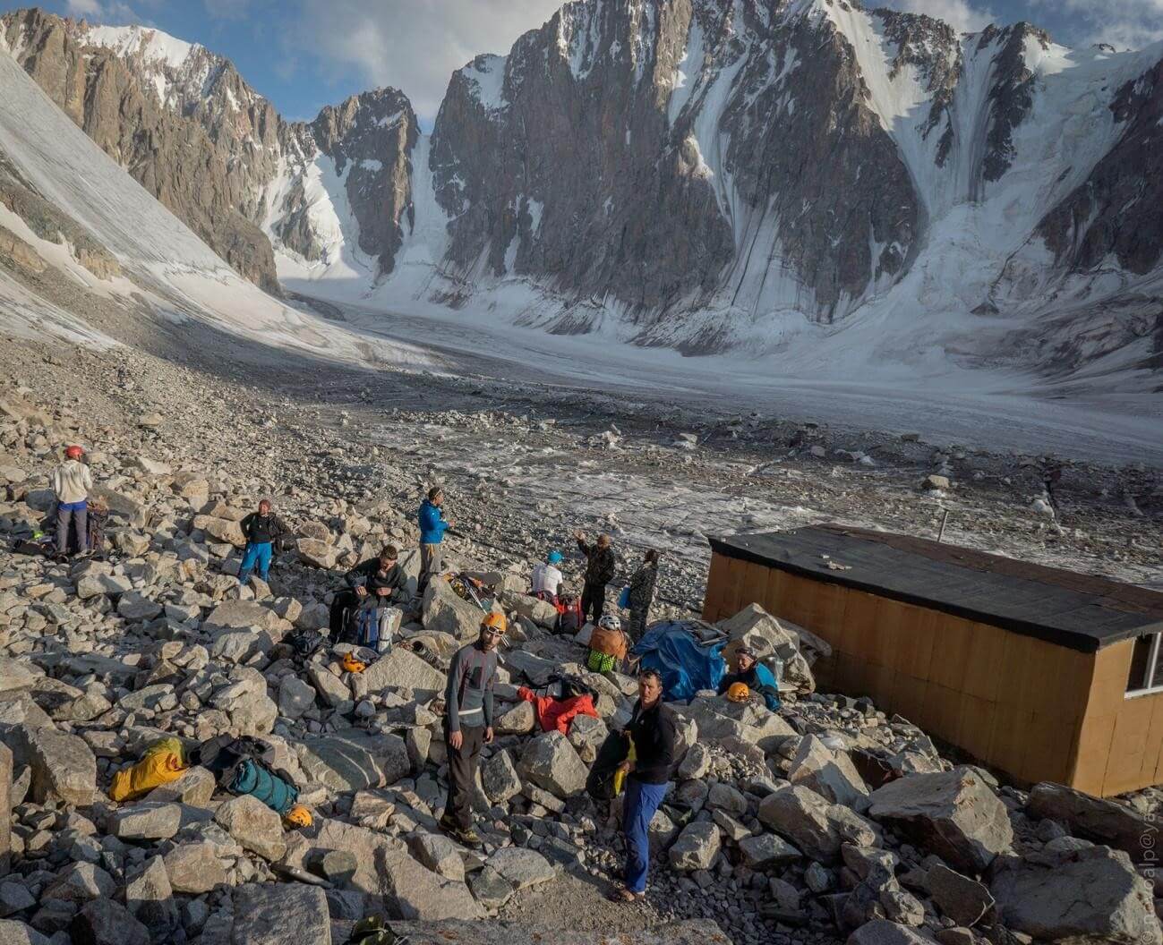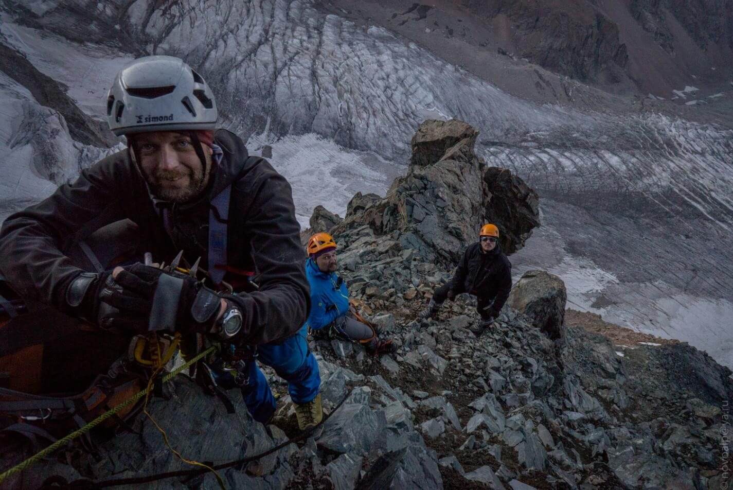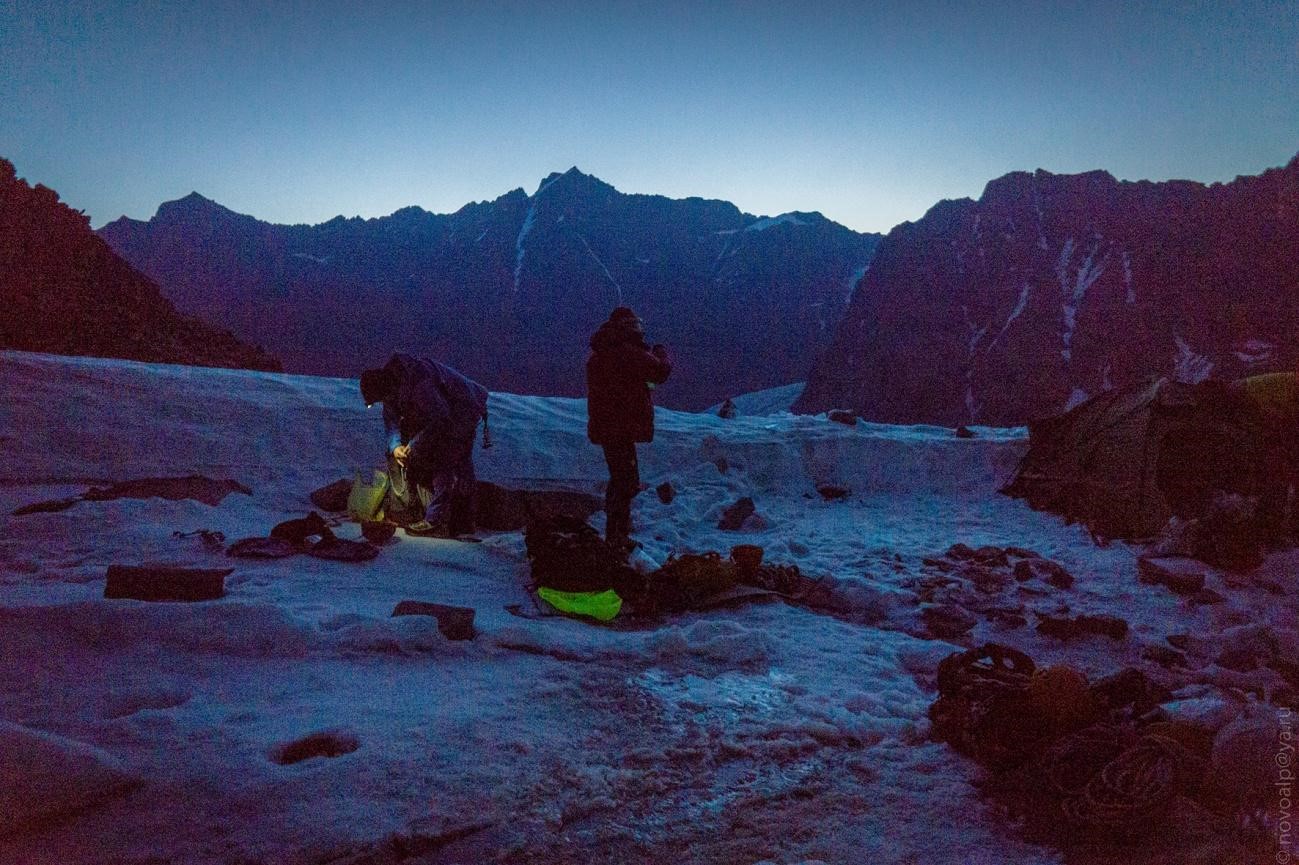 Рис 3.07. Группа на «подушке» под пер. Аламединская стена(4340,3Б,216) ранне утро.