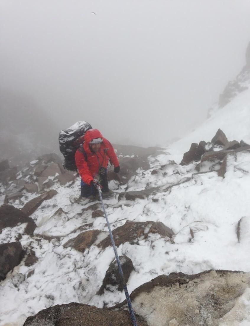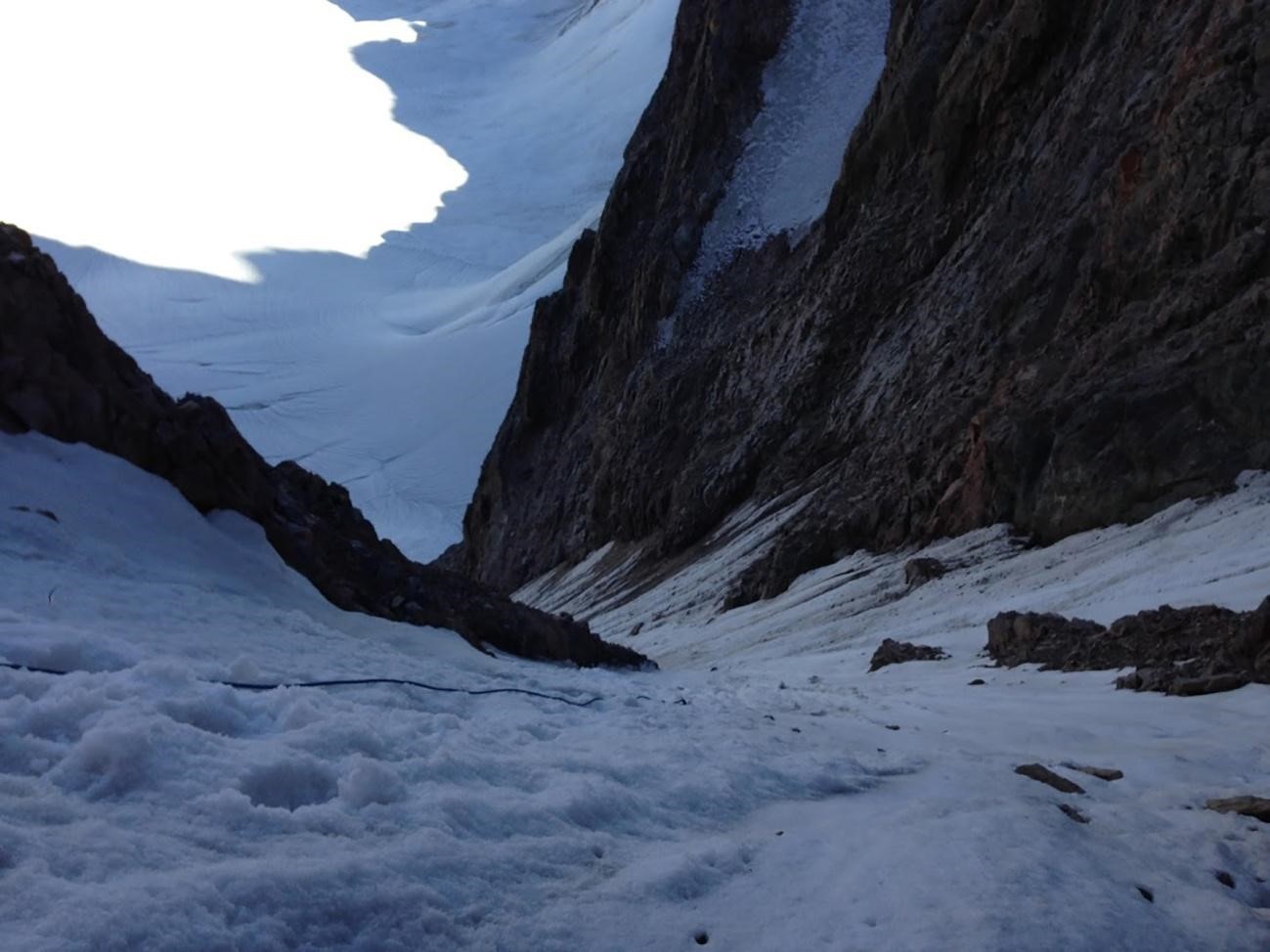 Рис 3.12. Место провески четвертой веревки. Снежник на переднем плане это бок снежного ребра