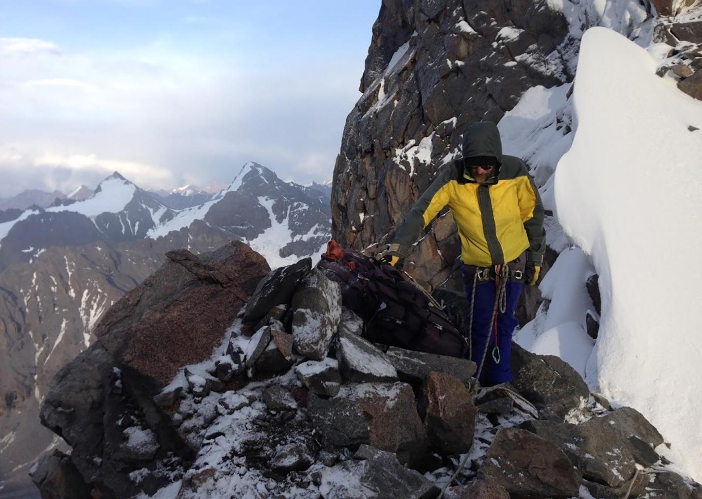 Рис 3.19. Превая веревка спуска пер. Аламединская Стена(4340,3Б,216) на запад.