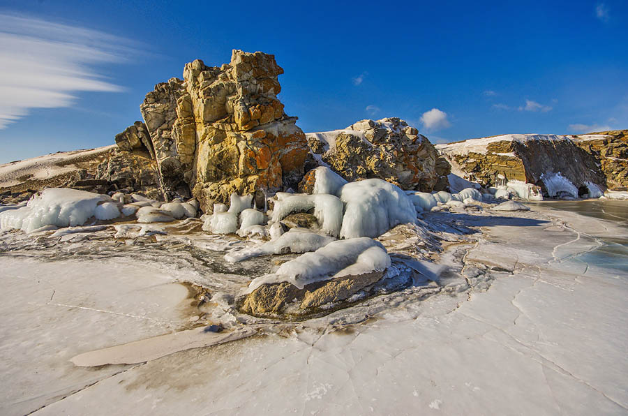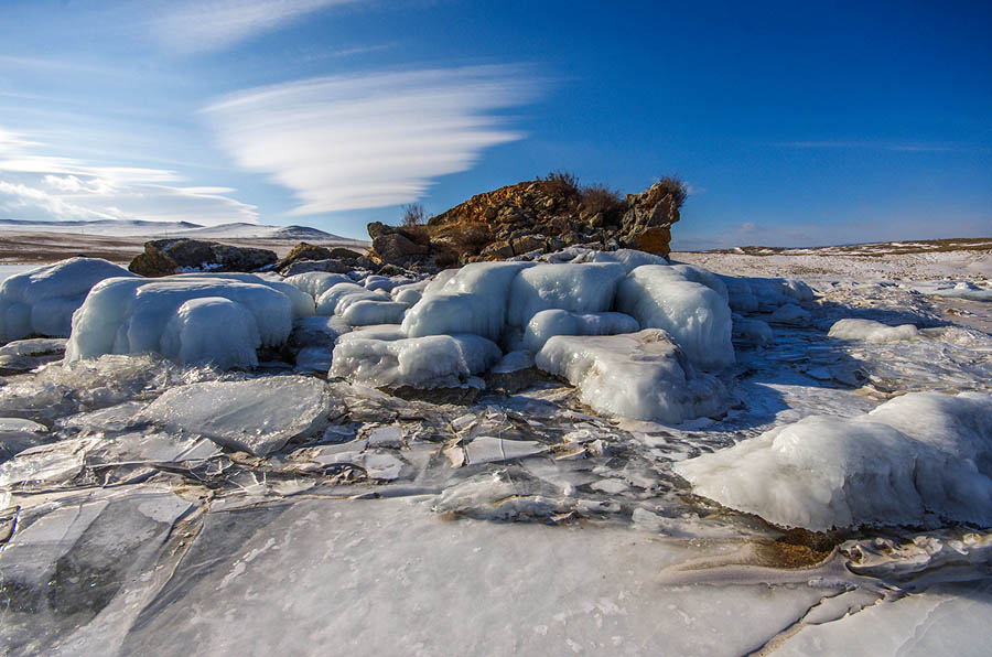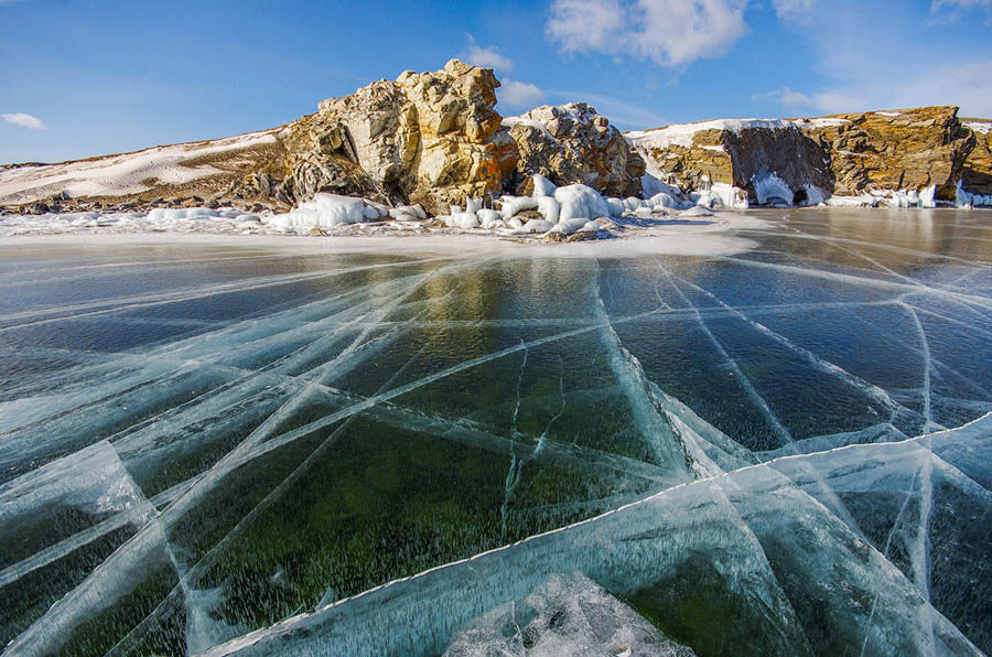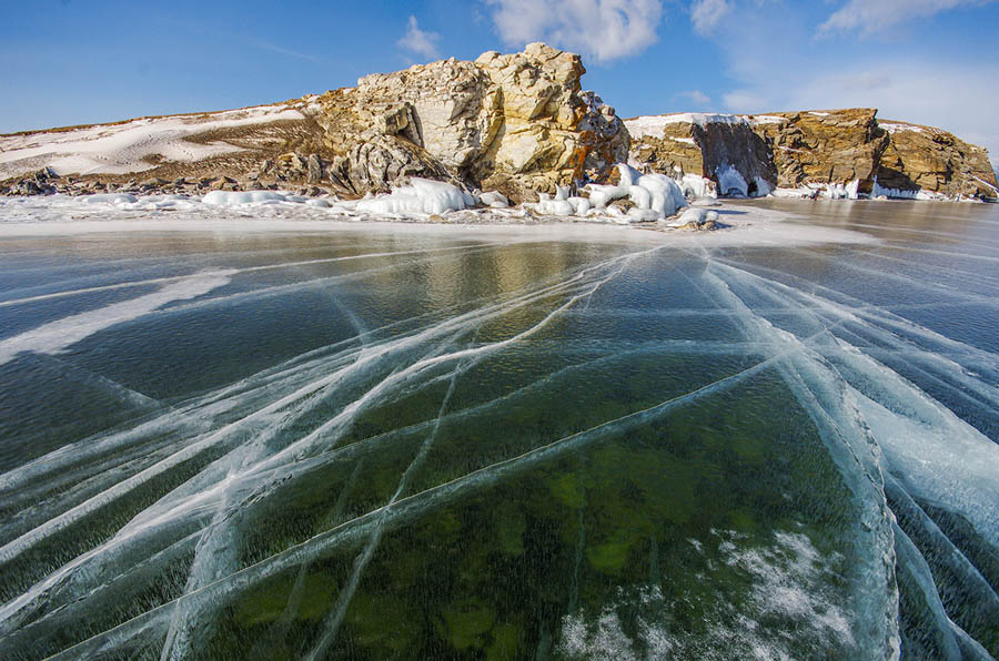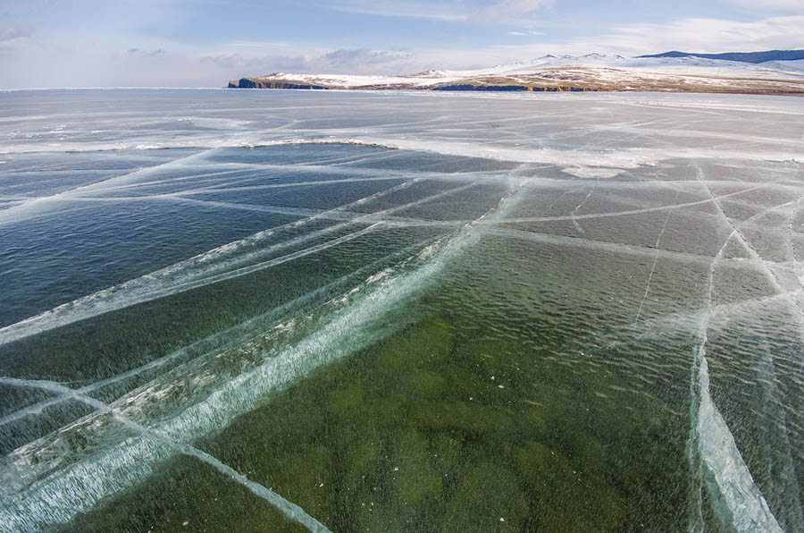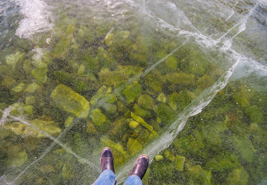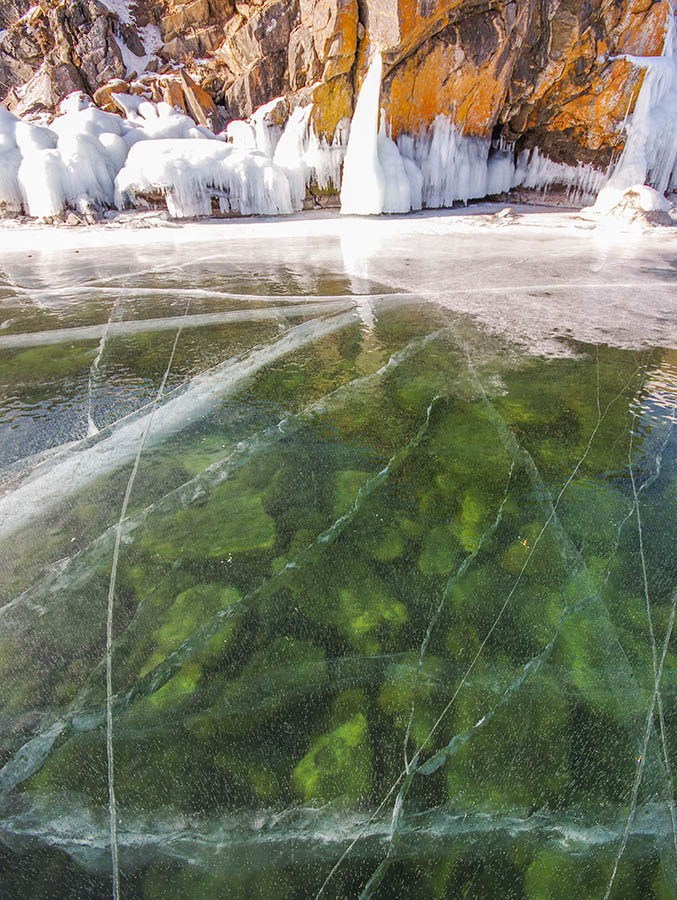 Байкал то чем знаменит? Не только тем, что это самое глубокое озеро на земном шаре, а и самой чистой и прозрачной водой. Соответственно, тут и лёд поразительной прозрачности. Здесь хорошо видно дно Байкала
