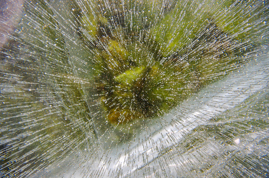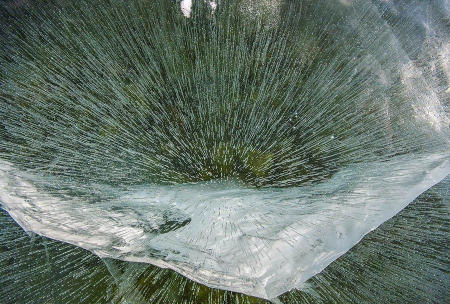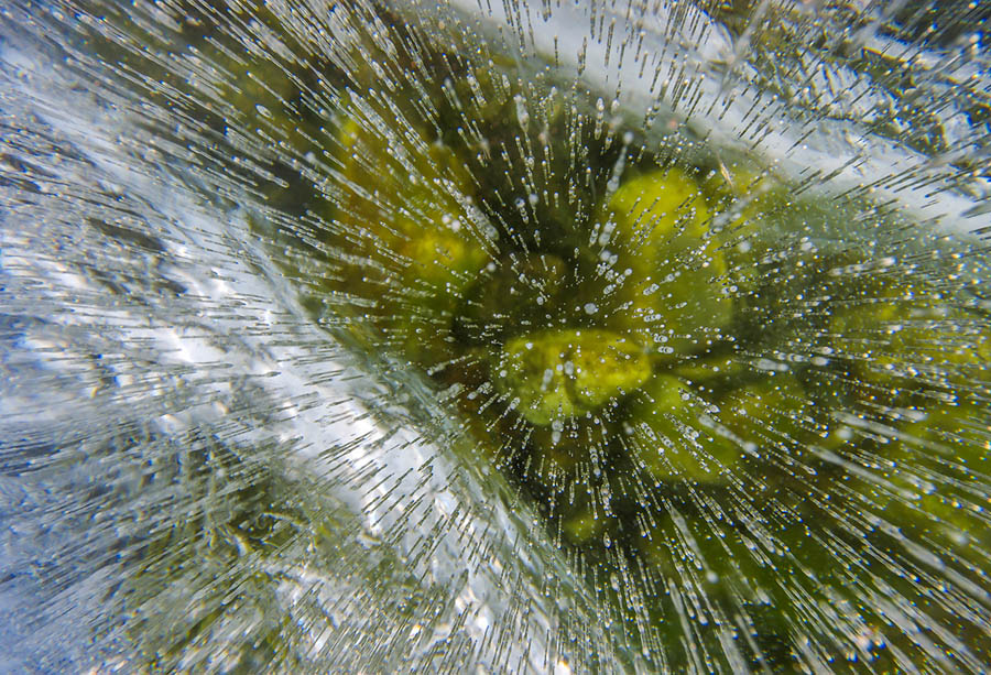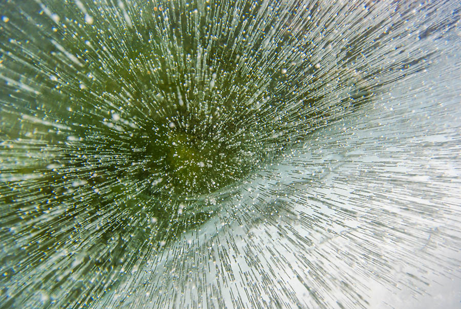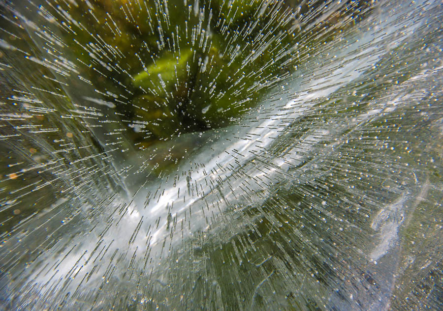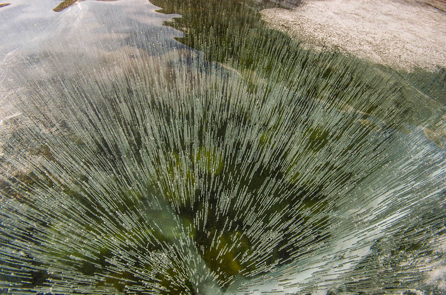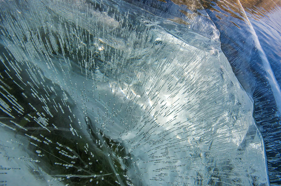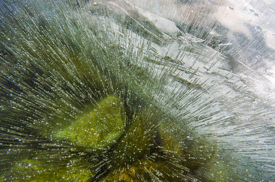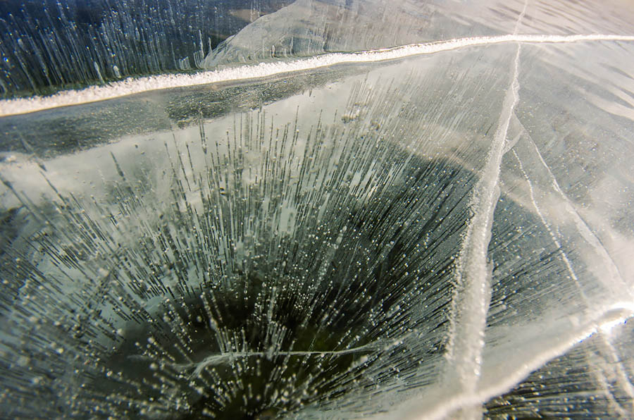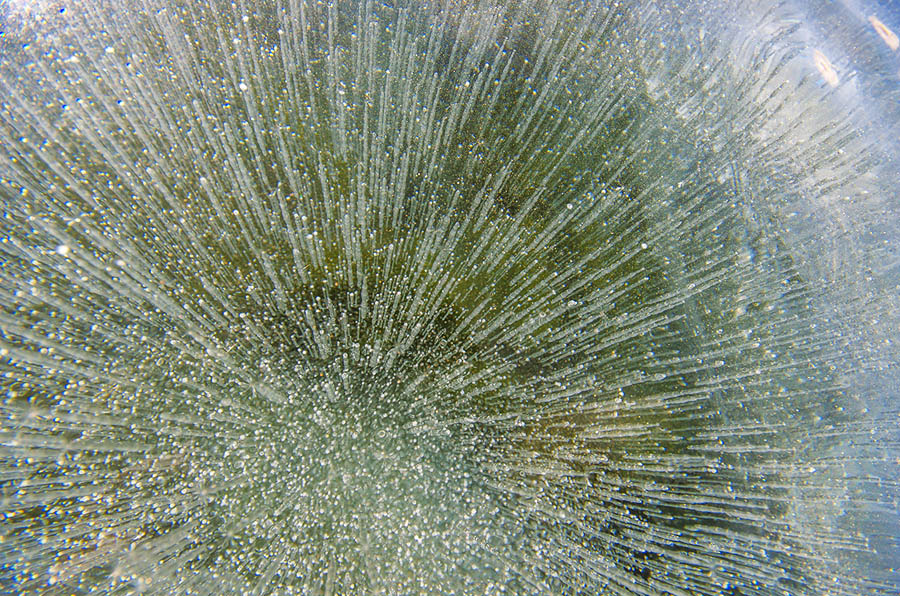 Микрокосмос. Лёд пронизан тонкими столбиками воздуха