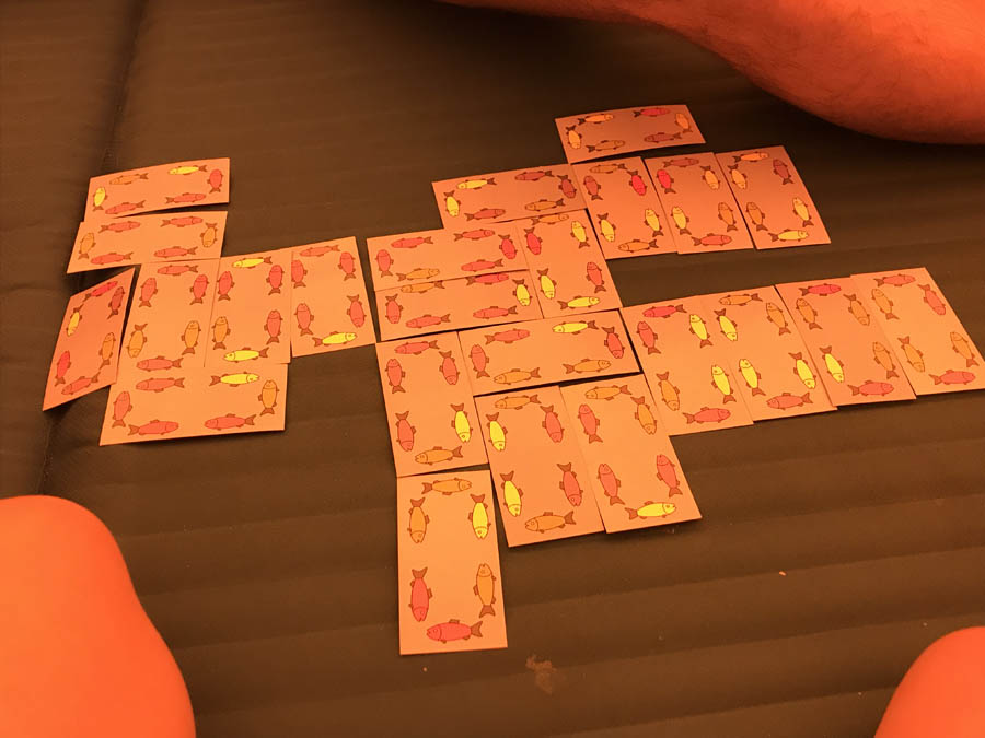 Вставали в 7 утра, собирались часа за полтора и в день шли примерно по 6 часов. Из развлечений взяли колонку с музыкой детского и взрослого репертуара и прекрасную легкую игру «Рыбки»).