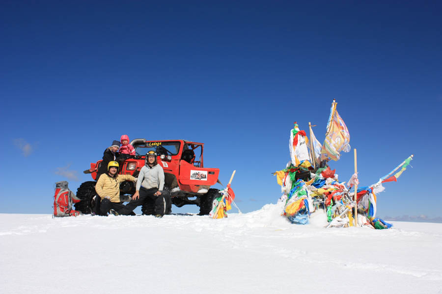 Потом в год и 9 месяцев мы поехали в республику Тыва, там мы поднялись на машине на высшую точку Восточной Сибири гору Монгуй-Тайга.
