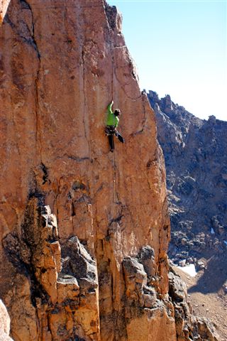 Alex Chabot Crack climbing on M2 spire, Frey valley