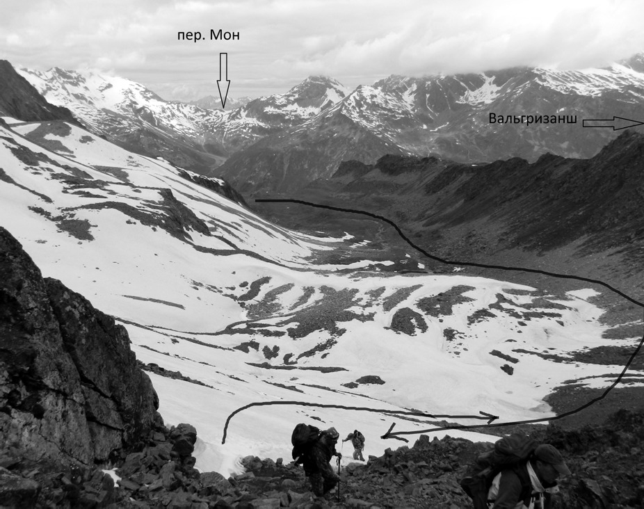 Фото 07. Прохождение взлёта пер. Мон со стороны дол. Гранд Альпе