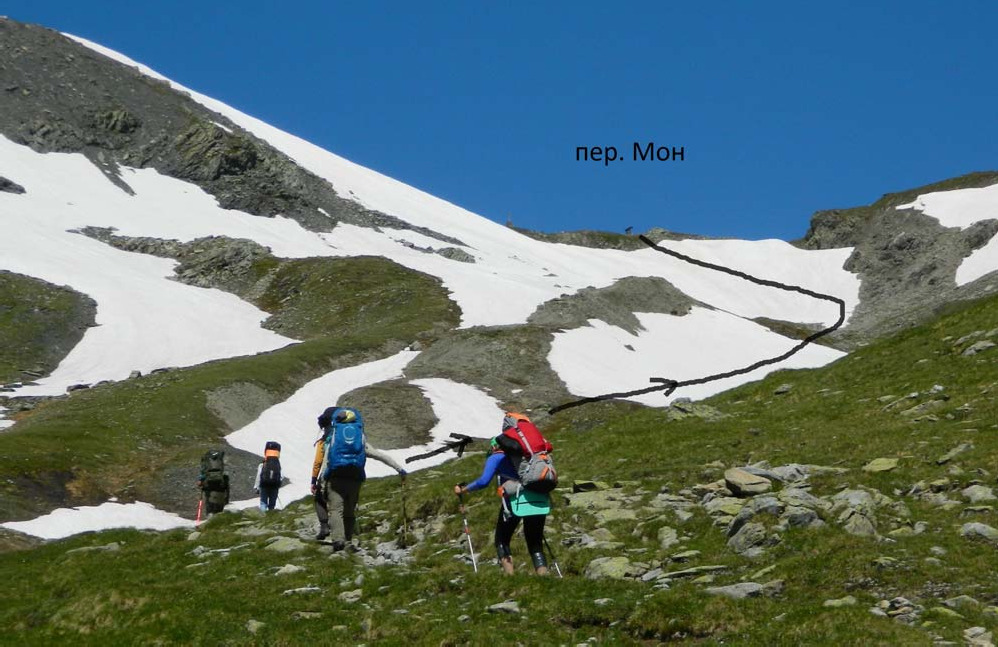 Фото 06. Подход к взлёту пер. Мон со стороны дол. Гранд Альпе