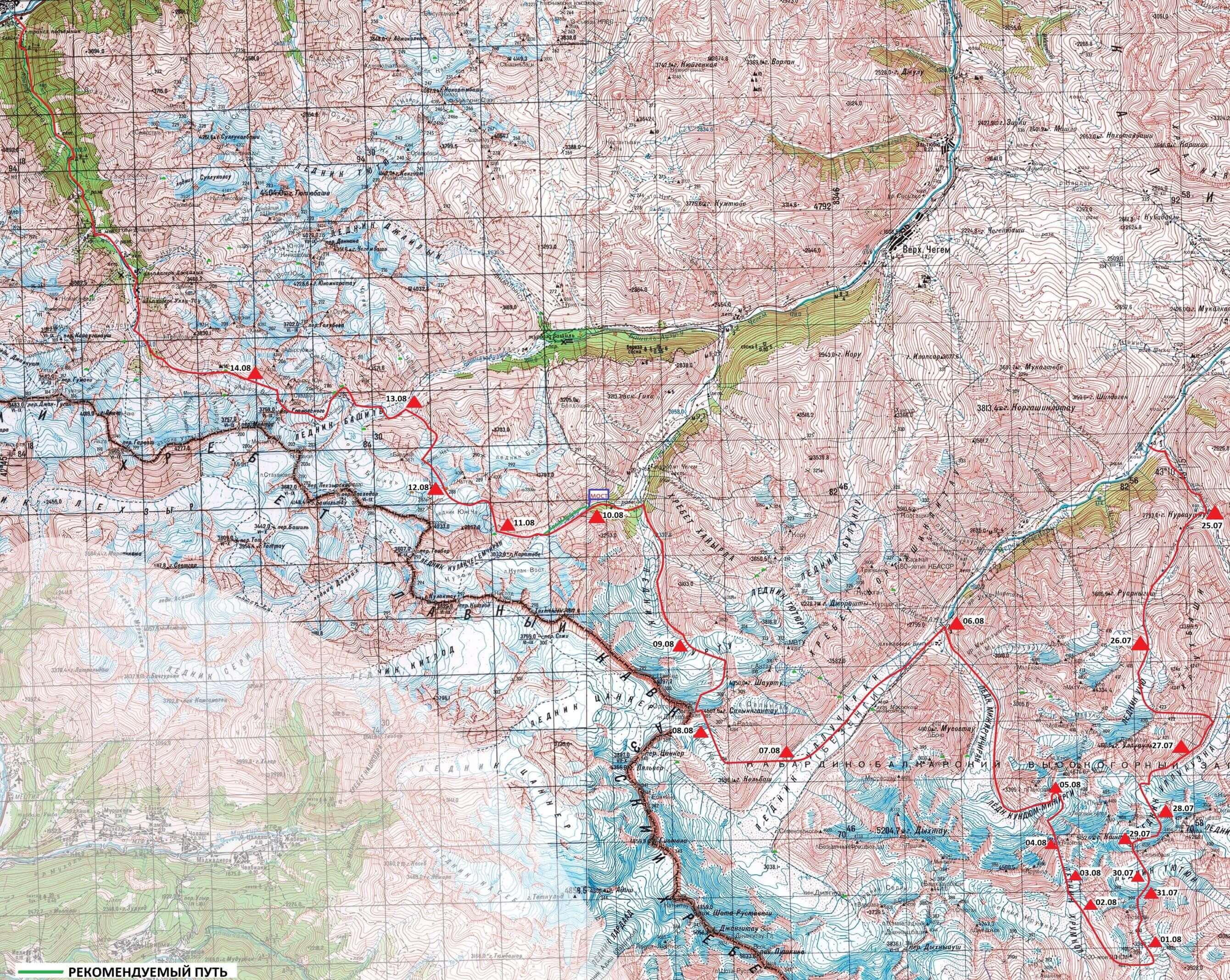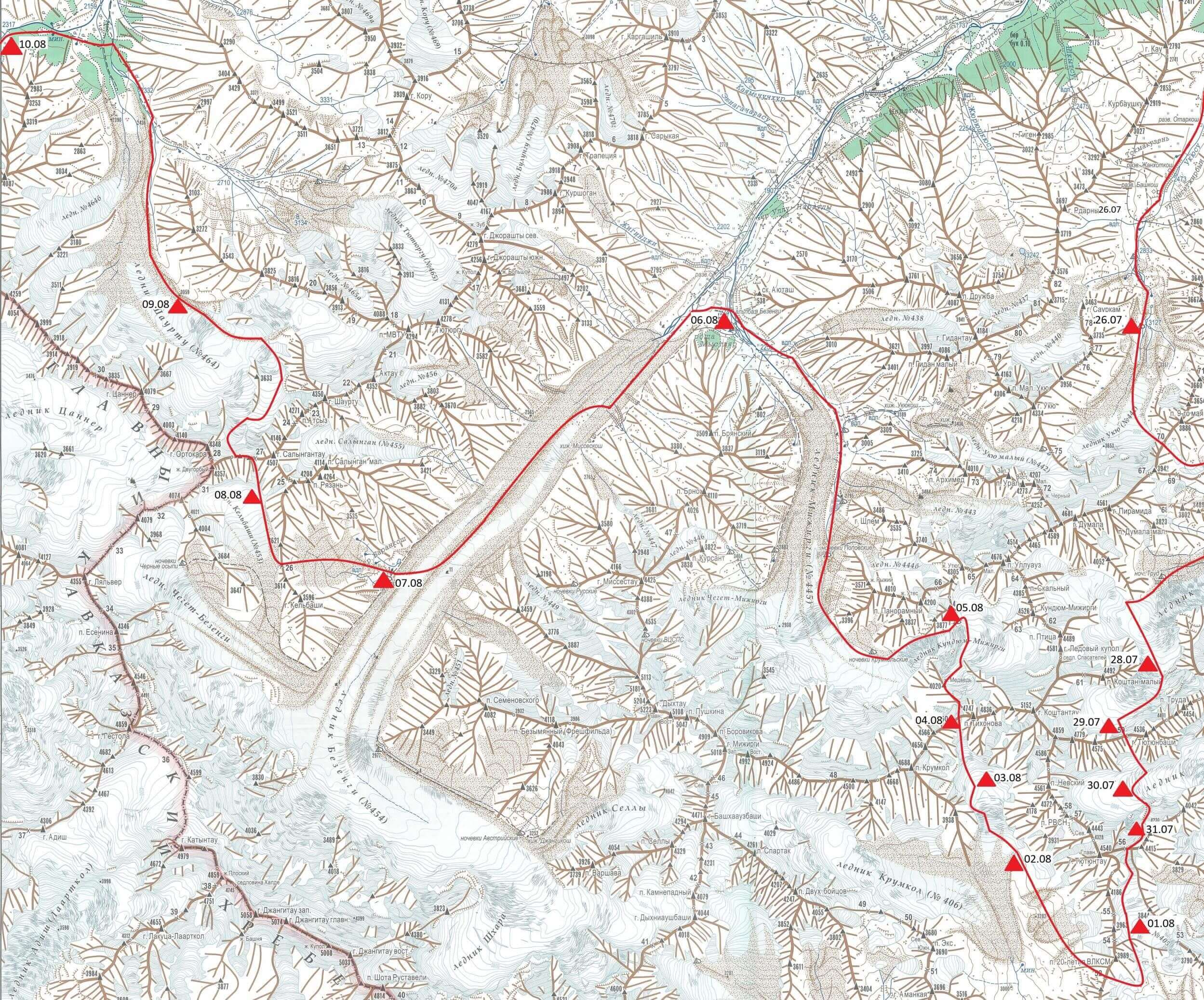 Отчет о горном спортивном маршруте 6 к.с. по Ц.Кавказу в период с 25 июля по 15 августа 2020 годаУсловные обозначения
