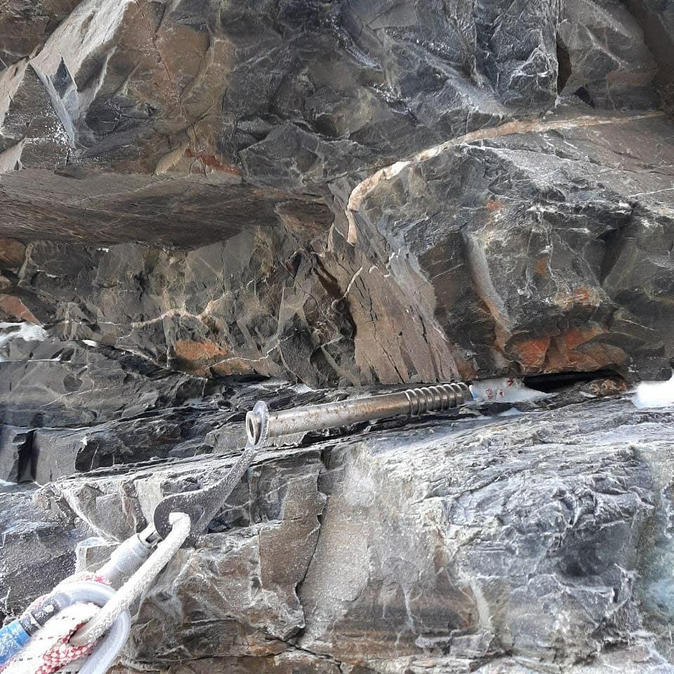 5. Веревки часто крепятся непосредственно на скальные/фирновые крючья или ледобуры без использования карабинов. Результат — перетирание веревок об узкие металлические грани.