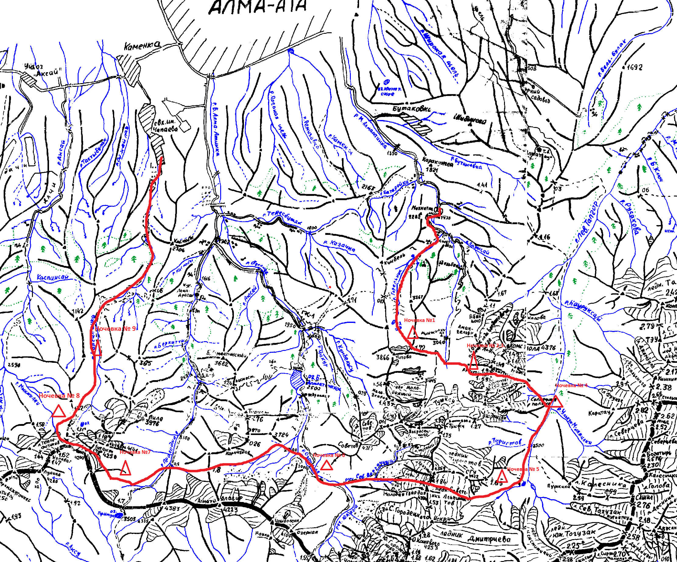 Отчет о горном туристском походе 2 к.с. по Сев. Тянь-Шаню, совершенном группой в период с 28.07 по 06.08. 2018 года.Справочные сведения Проводящая организация: Место проведения: Республика Казахстан, Алматинская область, Северный Тянь-Шань. Справочные сведения о маршруте: Горный туризм, 2 категории сложности Активная часть похода составила 118 км (запланировано 120,1км) Общая продолжительность похода 10 дней из них 10 дней ходовых Сроки проведения похода с 28.07.18 г. по 06.08.18 г. Подробная нитка запланированного маршрута: Алматы – ущелье Горельник – пер. Титова (1А, 3630) – урочище Мынжылки – ледник Маншук Маметовой – пер. Пионерский (1Б, 3870) – пер. Большой Талгарский (н/к, 3163) - река Левый Талгар –Солнечная Поляна – ледник Дмитриева – пер. Молодая Гвардия (1Б, 4398) – слияния рек Озерного и Кызылсай – пер. Алматы Алагир (н/к, 3655) – ущелье Проходное – пер. Ломакина (1А, 3830) – посёлок Каргалы. Подробная нитка пройденного маршрута: Алматы – ущелье Горельник – пер. Титова (1А, 3630) – урочище Мынжылки– ледник Маншук Маметовой – пер. Пионерский (1Б, 3870) – пер. Большой Талгарский (н/к, 3163) - река Левый Талгар –Солнечная Поляна – ледник Дмитриева – пер. Молодая Гвардия (1Б, 4398) – слияния рек Озерного и Кызылсай – пер. Алматы Алагир (н/к, 3655) – ущелье Проходное – пер. Ломакина (подножие) – ущелье Проходное – тб Алма-Арасан Обзорная карта региона с указанием маршрута и подъездов Состав группы