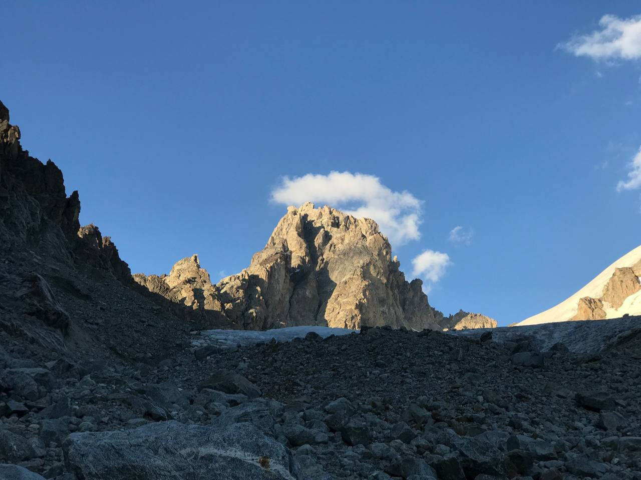 С утра 20 пошли под гору, у нас было два варианта маршрута - Французова - 5б и Ласкавого - 5б, выбирали уже непосредственно перед горой пока шли по леднику, остановились на Ласкавом. Лезли, лезли и залезли. Спустились на ночёвки в пол седьмого вечера и быстренько собравшись дотикали до Уллу-Тау к девяти с копейками. Подъемник в альплагерь работает только до 6 вечера, так, что нам не удалось уехать в это же день, поэтому уехали утром сегодняшнего дня обратно в Пятигорск.