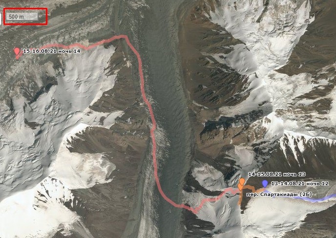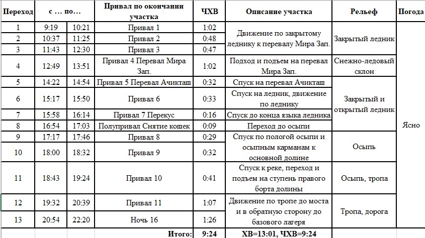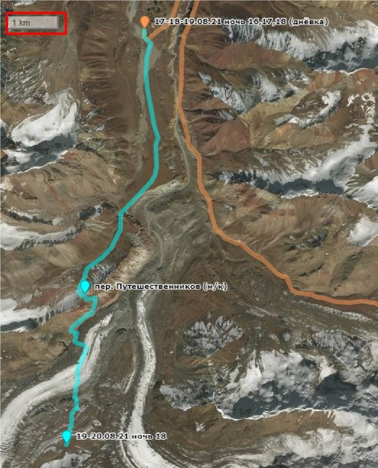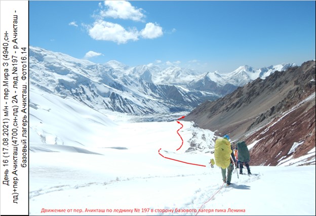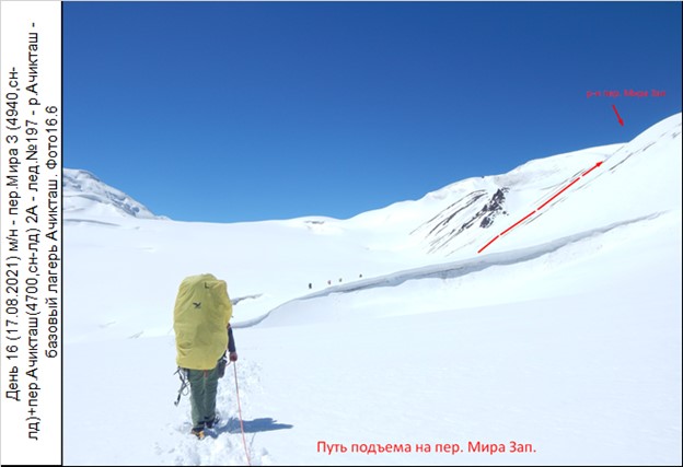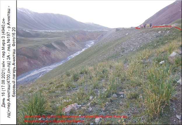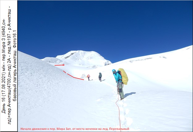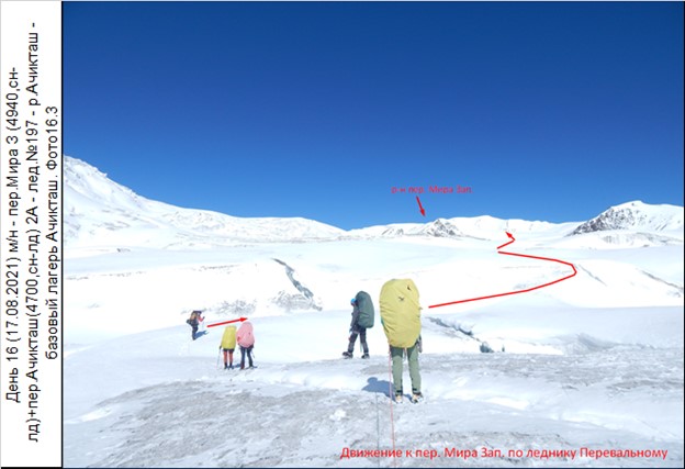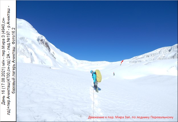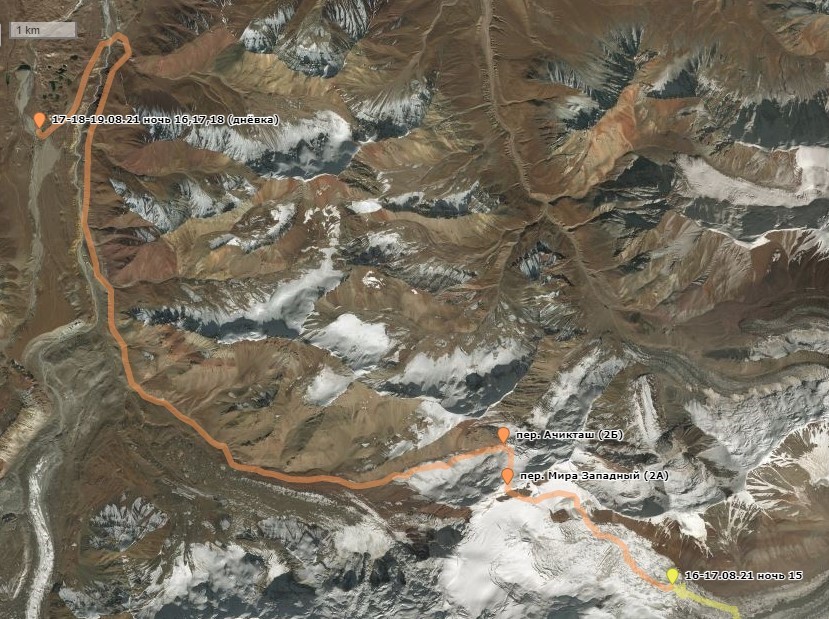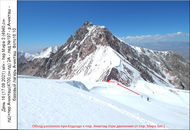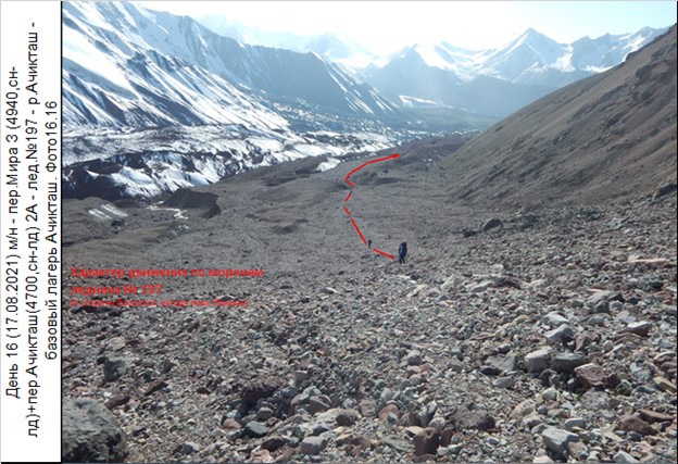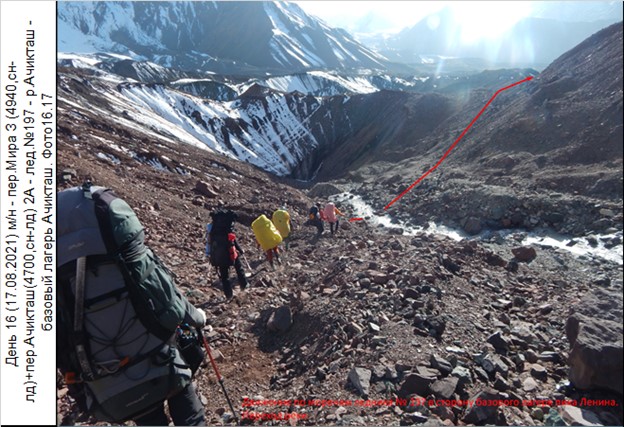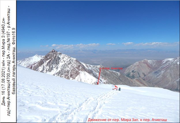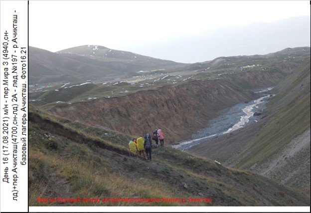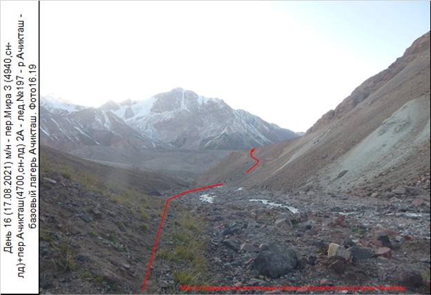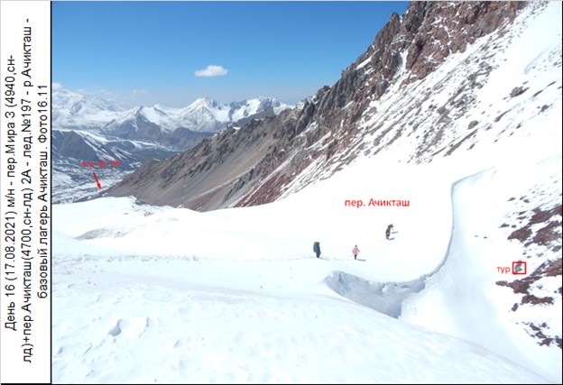 День 16 (17.08.2021) м/н - пер.Мира З (4940,сн-лд)+пер.Ачикташ(4700,сн-лд) 2А - лед.№197 - р.Ачикташ - базовый лагерь Ачикташ