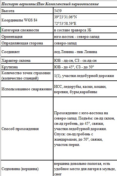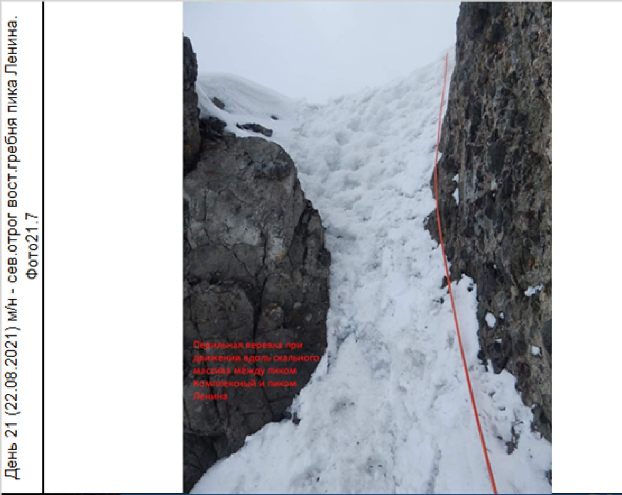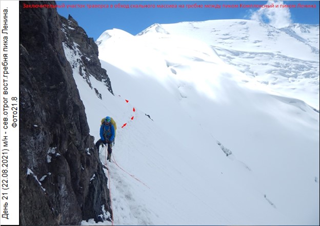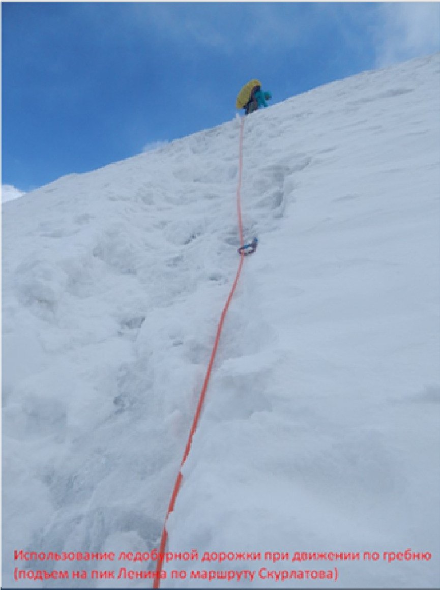 - При уменьшенном снежном покрове подъем на пик Комплексный может потребовать провешивания большого количества перил, в остальном траверс пика Ленина через пик