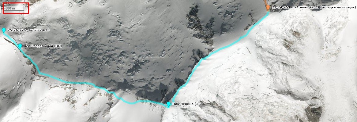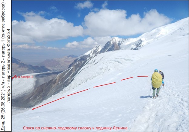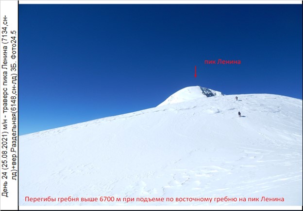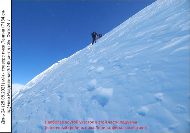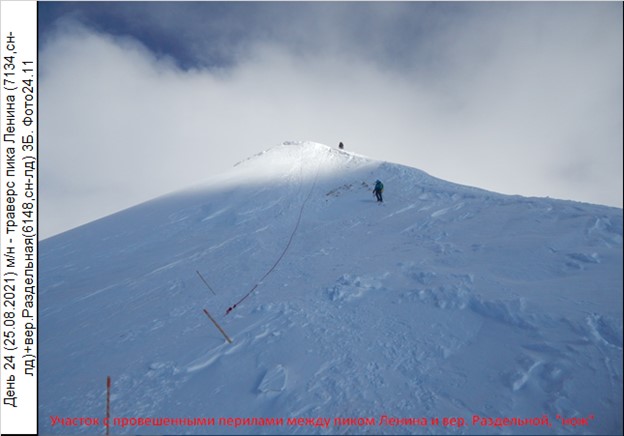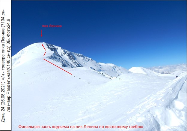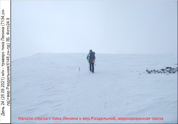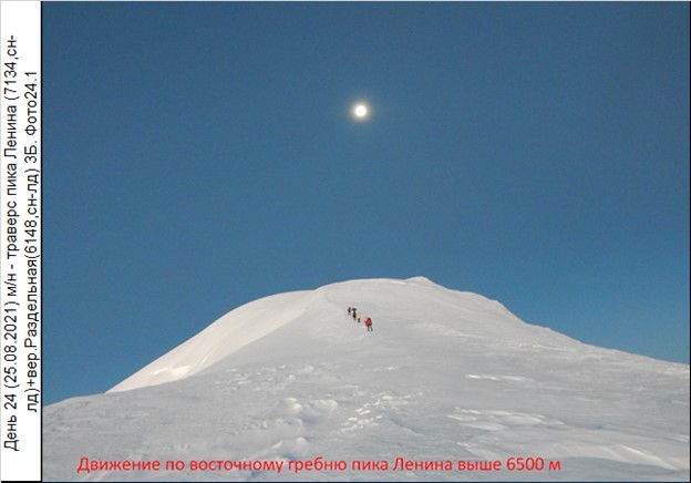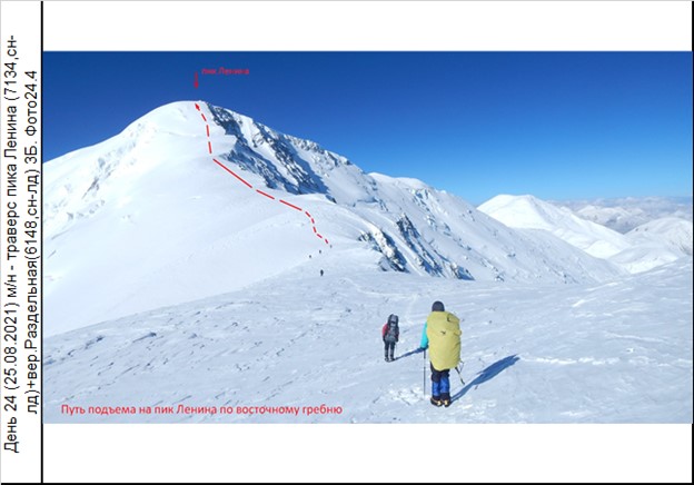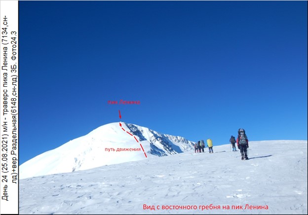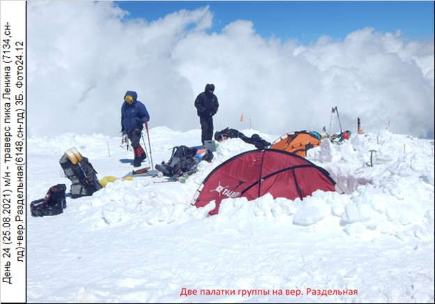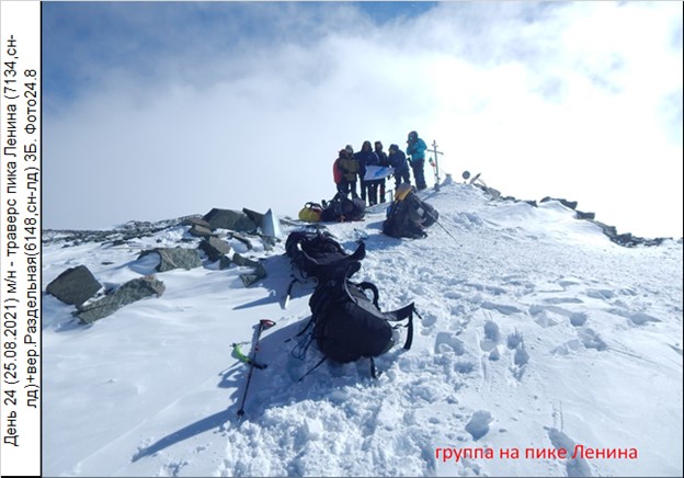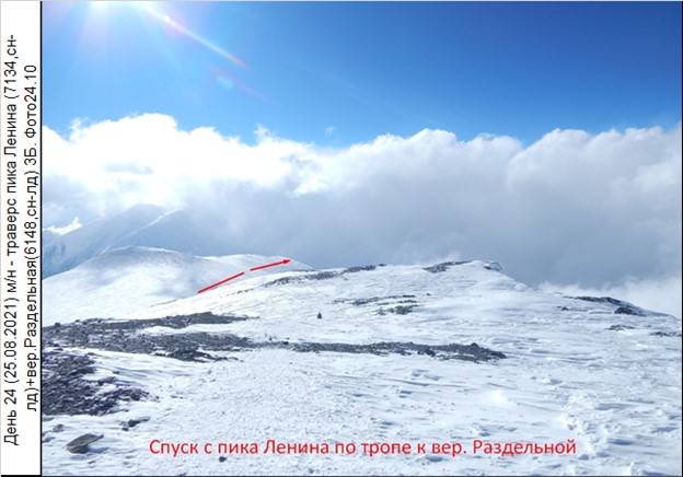 День 24 (25.08.2021) м/н - траверс пика Ленина (7134,сн-лд)+вер.Раздельная(6148,сн-лд) 3Б