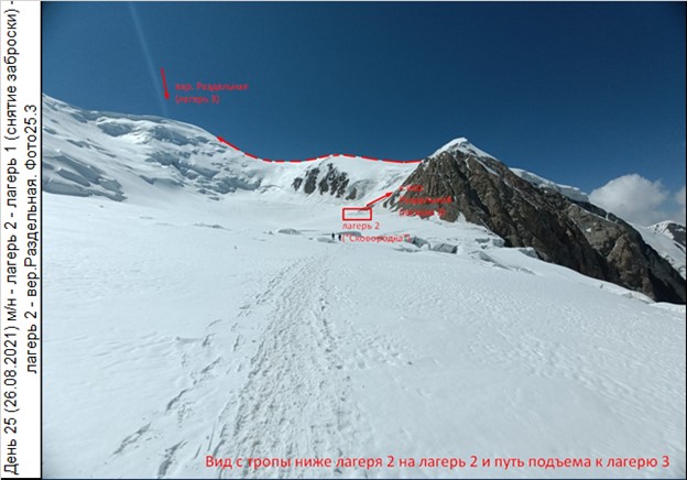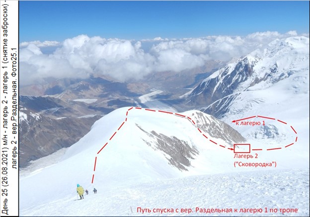 День 25 (26.08.2021) м/н - лагерь 2 - лагерь 1 (снятие заброски) - лагерь 2 - вер.Раздельная