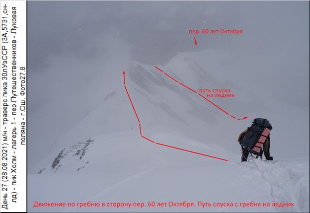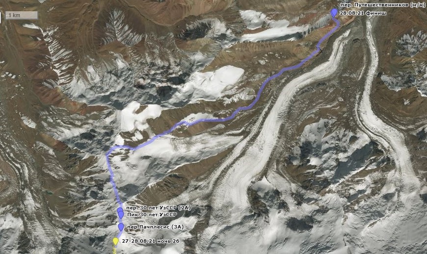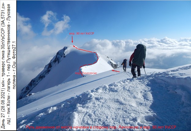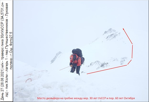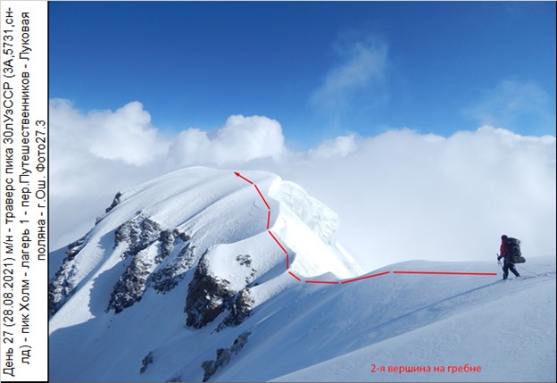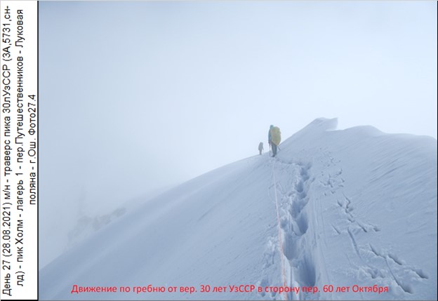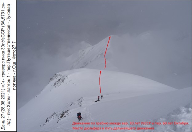 День 27 (28.08.2021) м/н - траверс пика 30лУзССР (3А,5731,сн-лд) - пик Холм - лагерь 1 - пер.Путешественников - Луковая поляна - г.Ош.