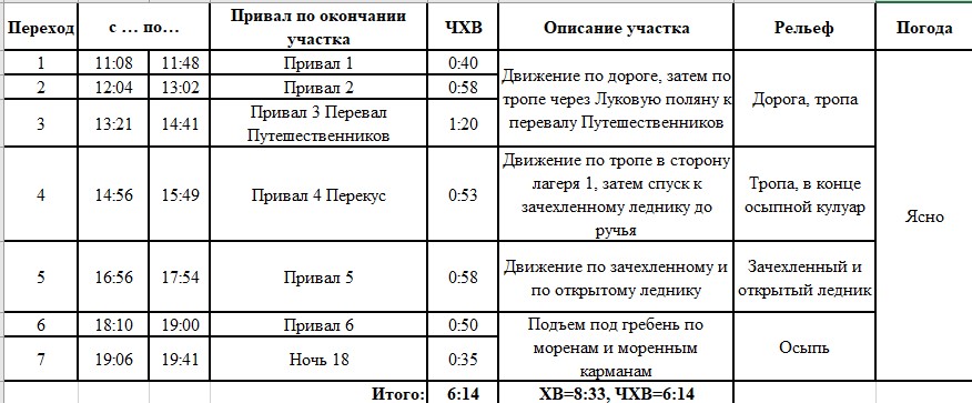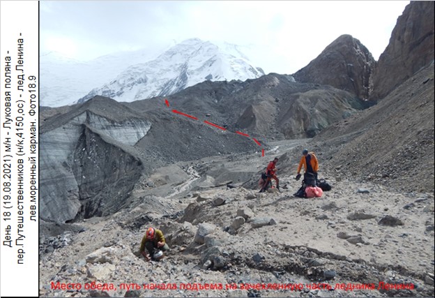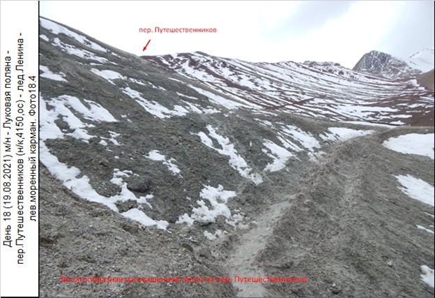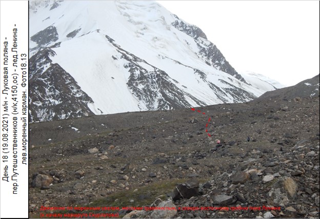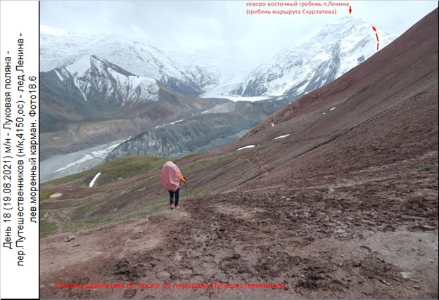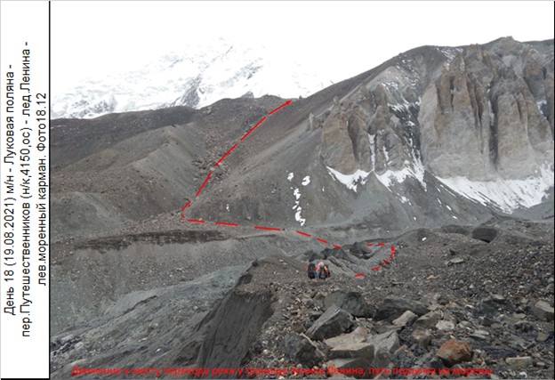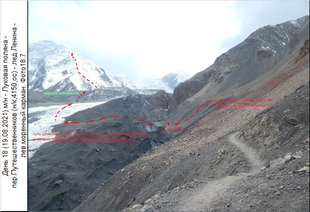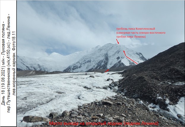 День 18 (19.08.2021) м/н - Луковая поляна - пер.Путешественников (н/к,4150,ос) - лед.Ленина - лев.моренный карман