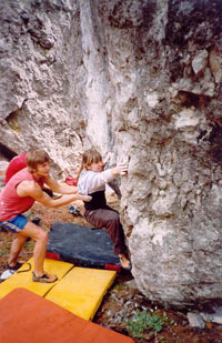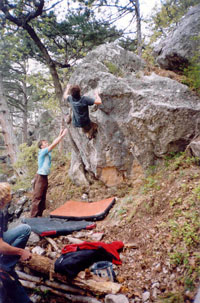 Honey is sweat even if the bee stings! Crimean bouldering - ideas aloud... Last May holidays remembered also as bouldering holidays for all rock-climbers who came to the Red Stone area! Party of sportsmen from Moscow, Lvov, Petersburg, Kiev, Gomel, Samara, Dnepropetrovsk etc selflessly was fighting during two weeks on picturesque boulders of Krasnokamenka and Sosnyak (Pine forest). There were a lot of friend communication, interesting supervision, joint plans... My numerous (and long-term) attempts to find out the leading sportsmen' opinion on chances of development of Crimean bouldering allowed to formulate three main problems. The first one consists in that fact that a lot of climbers just want to boulder completely putting aside a thought to take a bouldering pad as a precaution as a bulky makeweight to (as always) a heavy rucksack cools almost all judges of free climbing. But without a "crash pad" the number of falling can be reduced up to only one! On the one hand - "safety is above all things", on the other side - they are lazy about taking so "heavy" thing. A vicious circle! But if they could arrange for the hire of equipment for bouldering "the ice will break up"! The second problem: the most part of climbers just want to climb not losing the time for searches of boulders, line clearing, finding-out of lines' grades, arrangement of a start site etc. And all of this is quite foolproof - naturally, skilled route-setters should do that. Put it shortly, first they have to do considerable volume of earthwork, and then to make a competent guide-book with the area topo, photos of boulders with marked problems and their adequate classification. It seems that everything is extremely clear. But here one more important nuance comes to light! The matter is that only a few sportsmen (they can be counted on the fingers of one hand) can estimate lines on "wild blocks". For that simple reason, that only professionals that have the opportunity to travel abroad and to train together with legislators of bouldering rules (with the strongest foreign sportsmen and route-setters) can not toe the mark of own ambitions and reflexes generated on long routes. You should remember that estimating and naming a line (modesty suits the Samurai!). And, at last, the third problem. There is an opinion, that the Crimean limestone is too traumatic for bouldering. Really, edges, spread with openwork thorns, frequently are not good for stylish jumping. But you should just to accept the rules which native rocks dictate (how bouldering-climbers from newfangled western video clips do that). Because we do not want to kill the originality of the Crimean relief by modifying each calcareous beauty - a prickle into a mere apology for a climbing gym's edge! Summing up to the aforesaid, I have honour to inform: for the present time we are making a huge work systematizing information about the established areas of the Red Stone and sanatorium "Sosnyak". Next thing on the agenda is the areas of Shaan Kaya, Foros, Chelebi (Parus (Sails)), Sarych, Laspi, Batiliman etc. A plenty of work!! Serik Kazbekov, Andrey Vedenmeer, Shaferov Sergey are engaged in route estimation. We strongly hope that Salavat Rakhmetov, Ovchinnikov Evgeny and Evgeny Krivosheitsev help us. And we invite the women - skilled route-estimators of blocks to jazz these actions and also to make the qualified amendments. Gradually we are solving out the problem with crash pad. In "Red Stone" shop (Krasnokamenka settlement, Centralnaya Street, 22, ph. 8 067 7487615, contact: Kovalev Sergey) you can hire this specific equipment. If everything go on how it was so intended by us it would be possible to organize in Crimea bouldering festivals of European level and "Red Stone" suits for this purpose as a quite good base. Many thanks to all the guys that have taken part in lines' setting! |