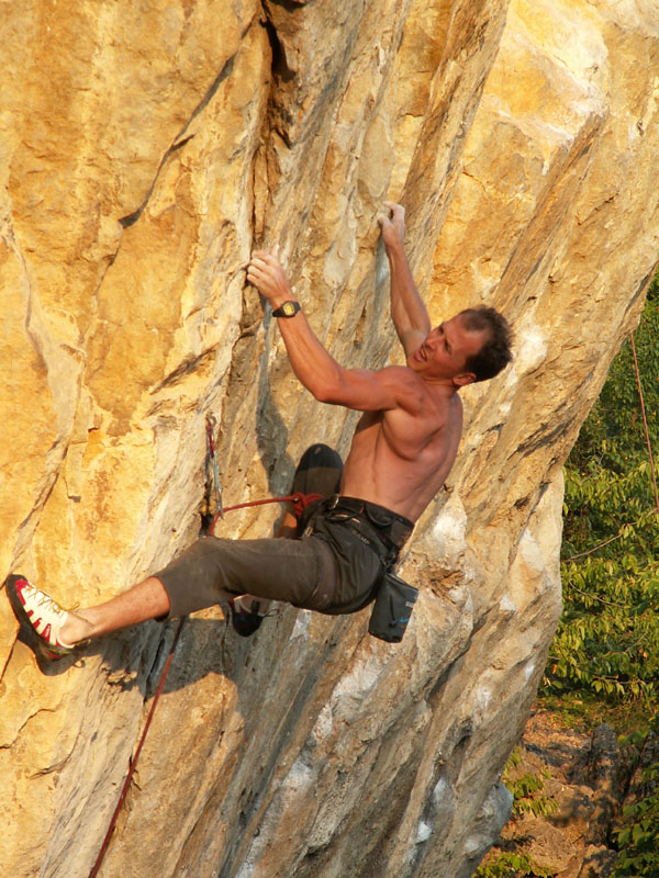 head for mistakes in the belay from elderly skilled rock-climber Mike