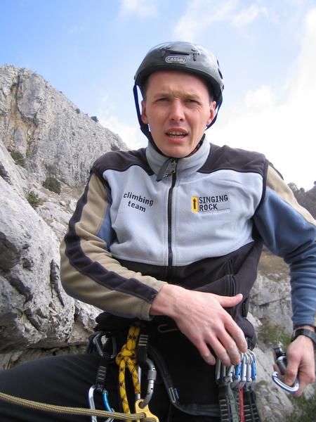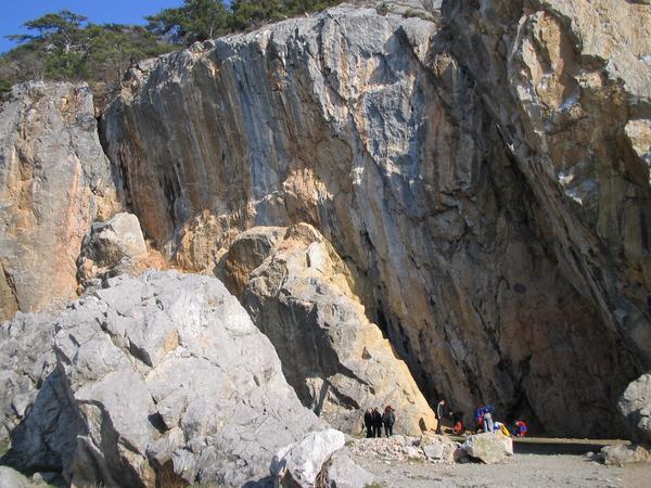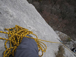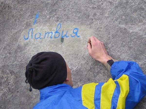 That was the time when Andrey Vedenmeijer worked of his project “Atlanta M”. Following his invitation I saw Shakaya cliff, and Andrey acquainted me with feasibilities to manage new sporting routes in the Crimea. This was the way how the idea about a new route to Uarchkaya cliff ‘Latvia” occurred, and I met some fantastic people then: Andrey and Margarita. In March 2005 we left for the Crimea that together with Andrey we would be able to realize a project – a new sporting route “Latvia” on Uarchkaya. All preparatory work was done by Andrey. We arrived when the route was already elaborated. Since there were not suitable weather and it was rainy in the Crimea during the first attempt our first climb failed. The next day weather were better and even it was sunny, but the only hindrance there on the cliff was a cutting wind that blew all the time. At the beginning of our climb we wrote the title “Latvia”. We did the route in two groups: Andrey Vedermeister and me – Andris Malashevskis, and Rolands Laganovskis, Mareks Veinbergs, Janis Vaivods. I was at the front during the first pitch, and Andrey – all the others.