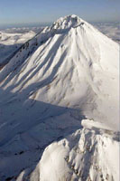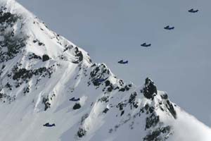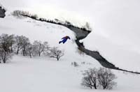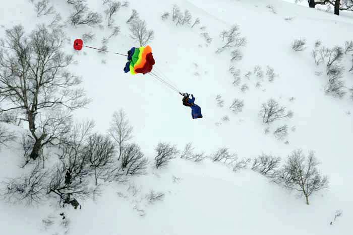 in a wing-suit along slopes of volcanoes in parallel with