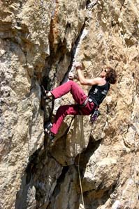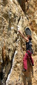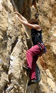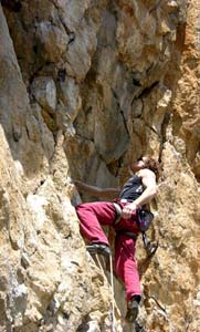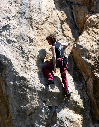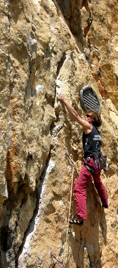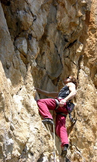 As I promised, I continue publication of photos from my Crimean trip. Today I want to show you 7 new photos of Eugeny Krivosheitsev. Who is he? What is his place in tables of ranks of modern rock-climbing? It is difficult to give you precise definition... It seems he has always taken a niche in the rock-climbing temple of fame. When I came, he had already been there and now he is there. And I am sure that he will be. When I look at him I recollect young Bob Marley or sometimes even Jah Rastafari came to earth. No, of course not! Eugeny just looks like them. And I can speak long about his sports successes: Numerous Champion of Ukraine in all kinds of rock-climbing, prize-winner of World Cup stages (also in all kinds), twice World champion on ice-climbing... He has been always attracted to climbing on natural relief, he seems less interested in climbing in gyms. He started on natural rocks and till now he spends on them the most part of training time. Among his achievements there are some routes of 8b +. For example, on-sight and red point of such lines as Reini's Vibes (8c / +), a bouldering problem 8b + in La Roche de Rame (I could see that with my own eyes) and others. For sending of such lines, as Reini's (it's very long), a climber have to be of a very good climbing technique: that helps to have a rest in such places where a person of middle level does not think to do even though he has tried it 20 times. But it seems to me that even good technique does not play a part here but more likely feeling of a rock, the ability to foresee. However Eugeny shows successful strong results climbing in gyms too. When I was spending a lot of time training in Odessa, he showed me the lines in a bouldering gym materialized through his enterprise (this bouldering gym of "Odessa" mountaineering club till now is considered as the best in Ukraine). The extraordinary staying power was an attribute of Eugeny. He does not consider the line containing less than 120 moves as a worth one. One fine day we were on a visit to Alexander Paukaev in Nikopol and laid a bet to hang on sloppers as longer as each of us could. Eugeny hung about 3 minutes whereas other participants of this "funny starts" among which there were some masters of sports did not hung 2 minutes. "Passive is more physiologic!" - he always affirms. He is very sociable and communicative: always tells stories, gags. For example, in 1999 he organized a visit of French correspondents of "Roc'n'Wall" to Crimea, and then they wrote a lot about Ukrainian and Russian rock-climbers. I am deeply convinced that all of this in