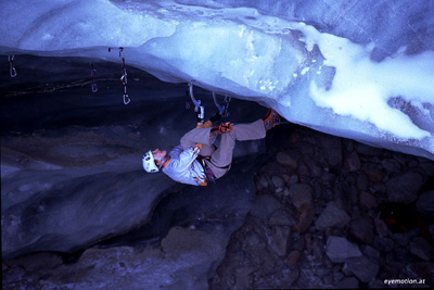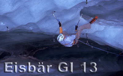 ОТКРЫТА ОХОТА НА ПОЛЯРНЫХ ХИЩНИКОВ Eisbaer был пройден тирольцем Маркусом Бенглером (Markus Bendler). Маршрут представляет собой 18-метровую линию с общим выносом потолка в 16(!!!) метров. Сложность оценена как GL12, причём аббревиатура GL означает Glacier Ice, а цифра 12 по сложности сравнима с микстовыми маршрутами М12.