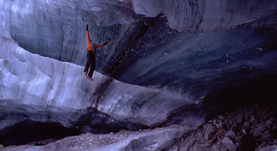 Gebhard Bendler БЕЛЫЙ МЕДВЕДЬ GL12 Самый сложный ледовый маршрут находится на данный момент в Австрии, точнее говоря в Тироле, ещё точнее в Питцтале. На местном леднике, в нависающем гроте языка, можно лазить маршруты такой сложности, что непосвящённым в материю людям трудно даже вообразить. Ежегодно, в начале сезона, мировая элита ледолазания заочно и приватно меряется силами на этом природном полигоне. Выходные за выходными ледовые монстры и монстрики вгрызаются в стылую материю. Категория сложности отодвигается раз за разом в недостижимый зенит.