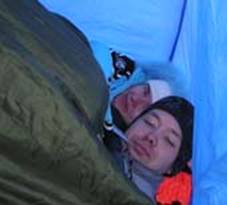 Известно, дыма без огня не бывает. В эфире:«Каждая команда сдает на проверку один спальный мешок, упакованный для хранения и транспортировки». Через двадцать минут возвращают, проверили. Мешки побывали в реке! Логика. Герметичные значит, воды не боятся?!.. Наши соседи четырехместный спальник намочили. Не смешно. Команда по рации: тем, кто высушит спальник за десять минут, добавят баллов. А мы высушили. Это просто. Конусом вокруг костра, и сохнет еще как! Снегопад не помешал! Совещание. Чай, пожалуйста! Можно даже часть вещей отправить на финиш следующего этапа на авто. Не предвещают ничего хорошего такие предложения судей. Бдительность притупили нашу, и выкрали члена команды. Вот!