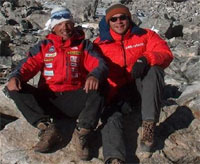 31.12В течение четырех дней мы поднимались по югославскому маршруту, но вынуждены были повернуть и возвратиться в базовый лагерь из-за сильного ветра и плохой погоды в целом. Я и Петр переночевали на 6550, и сегодня мы планировали подняться примерно на отметку 7000 метров, но это оказалось невозможным. Так что пришлось с 6550 спускаться прямиком на 5200, в базовый лагерь. Ветер и холод прошлой ночью, казалось, испытывали нас на прочность. Плохая погода, судя по всему, продлится еще 3-4 дня, так что нам предстоит хороший отдых и "подзарядка наших побуждений и намерений". А сегодня вечером мы празднуем Новый Год и желаем всем вам в 2005 году здоровья и отсутствия любых разногласий... Пусть он будет отличным для вас!! И я надеюсь, что Вы продолжите следить за нашими приключениями и в новом году.